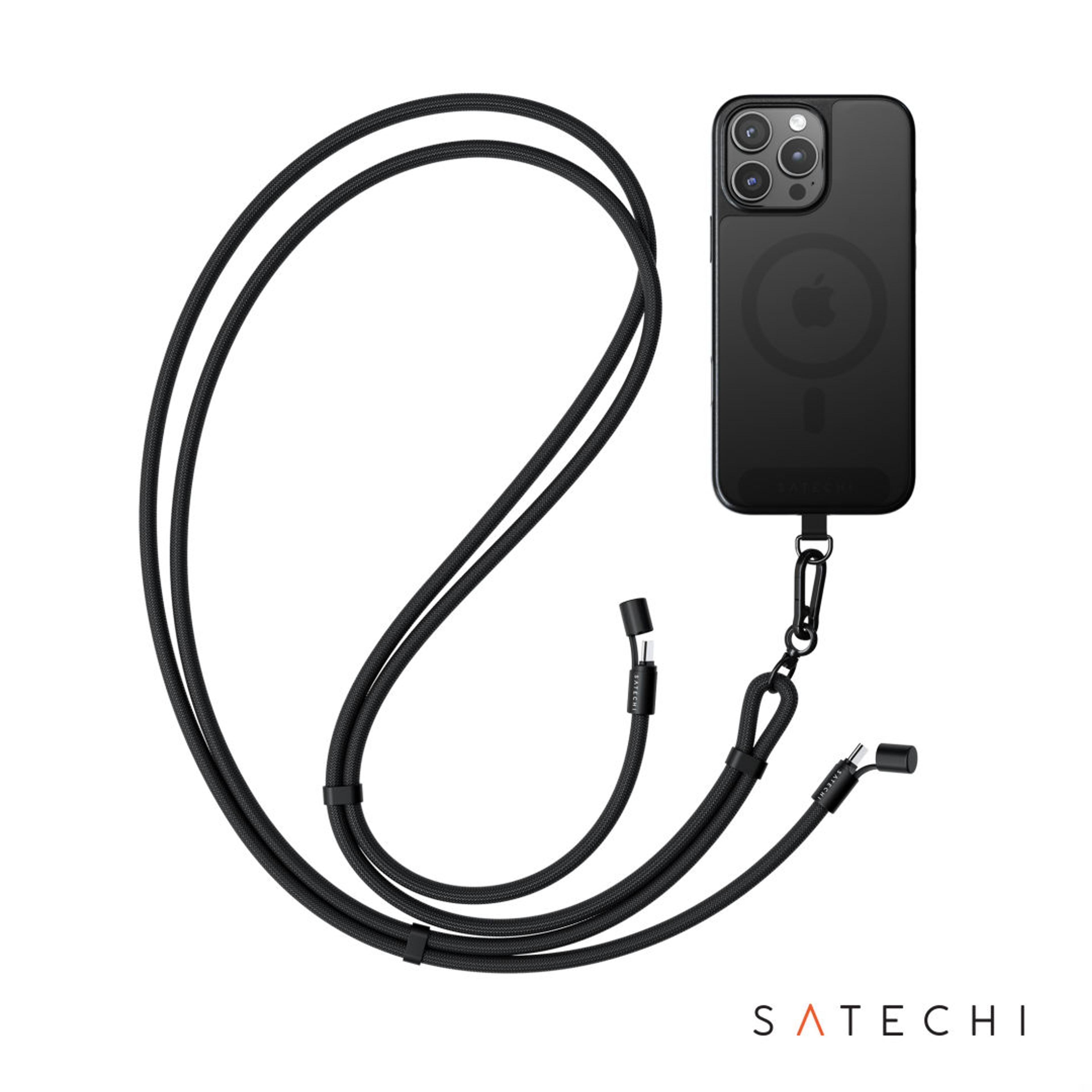 Stay powered and hands-free with the Satechi OntheGo™ Crossbody Lanyard Cable, a smart, wearable charging solution made for life on the move. Featuring a built-in USB-C to USB-C cable, it delivers fast charging and data transfer without the hassle of extra cords. Designed to keep your phone secure, accessible, and ready to use, this lightweight lanyard is perfect for travel, events, commuting, and busy days. Durable and stylish with a 59-inch cable length, it combines everyday convenience with modern functionality—so you’re always connected wherever you go.