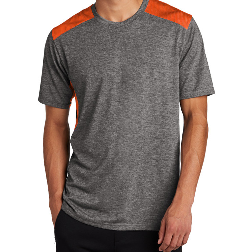 With mesh panels at targeted heat zones for ultimate breathability, this draft tee combines moisture-wicking performance, unbeatable tri-blend softness, and PosiCharge technology to lock in color. It features mesh panels at targeted heat zones for ultimate breathability and open-hole mesh at the shoulders, back yoke, and underarms.