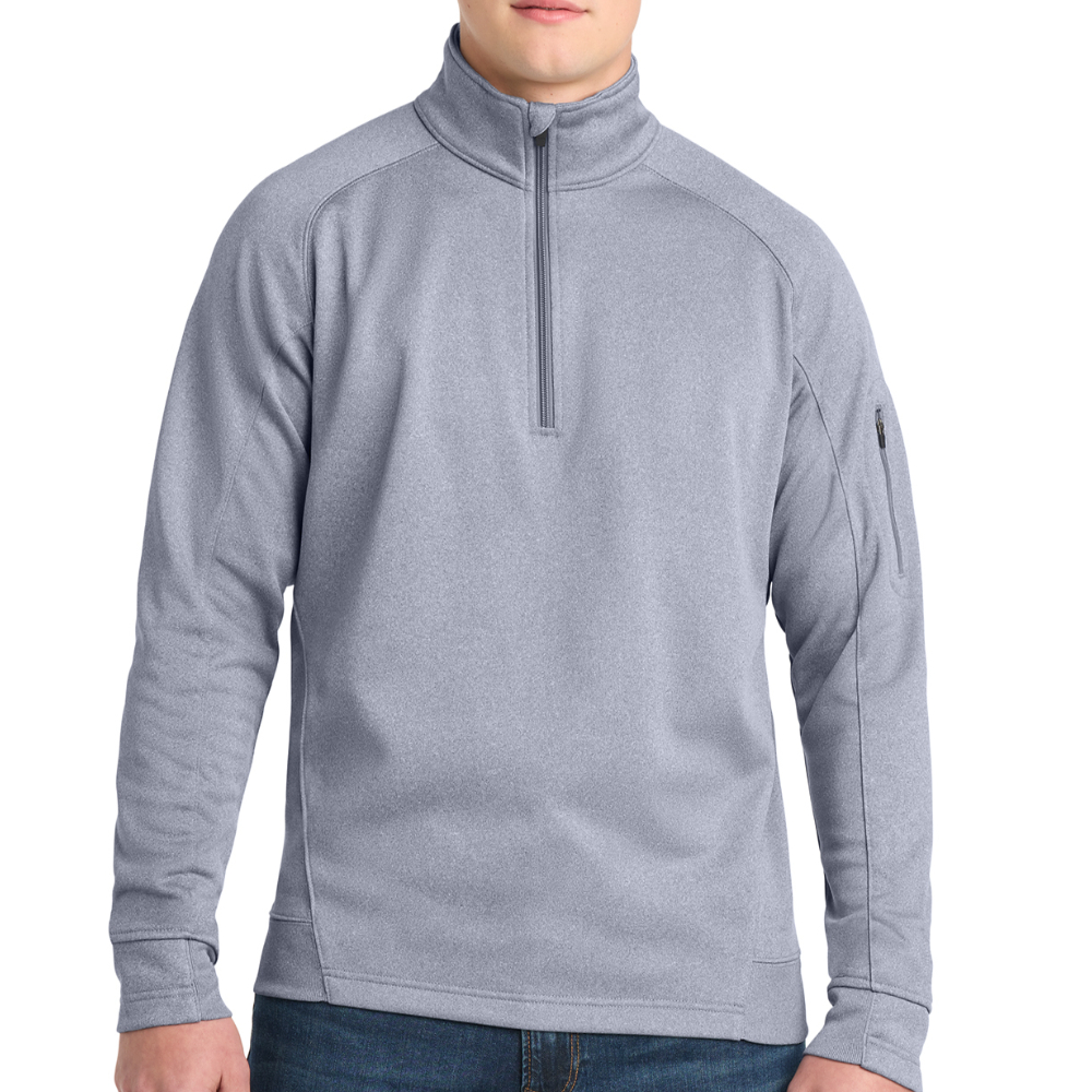 Perform at your best in the Sport-Tek Tech Fleece 1/4-Zip Pullover—designed for comfort, durability, and a polished, athletic look. Made with moisture-wicking, snag-resistant fabric, it keeps you cool, dry, and looking sharp from workdays to workouts. A soft brushed interior adds warmth without bulk, while raglan sleeves and a flexible fit allow for easy movement. Thoughtful details like a cadet collar, chin guard, and zippered sleeve pocket enhance both comfort and functionality—making it a go-to layer for training, travel, or everyday wear.