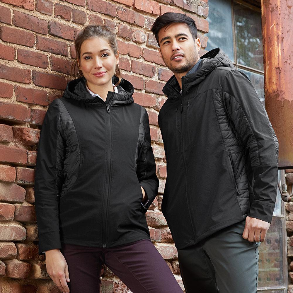 The Spyder Powerglyde Jacket combines comfort, warmth, and functionality with its nylon and elastane matte finish and recycled polyester fill. It features an adjustable hood with a cinch-cord and tricot-lined collar for added comfort. Strategically placed baffles ensure warmth without bulk, while reverse-coil zippers and an internal draft flap keep the elements out. Practical details include secure zip chest and hand pockets, two internal drop pockets, and a back zip pocket for additional storage. Reflective tape enhances visibility, and the adjustable hem cinch-cord provides a customizable fit. Simply add your design or artwork to create your very own!