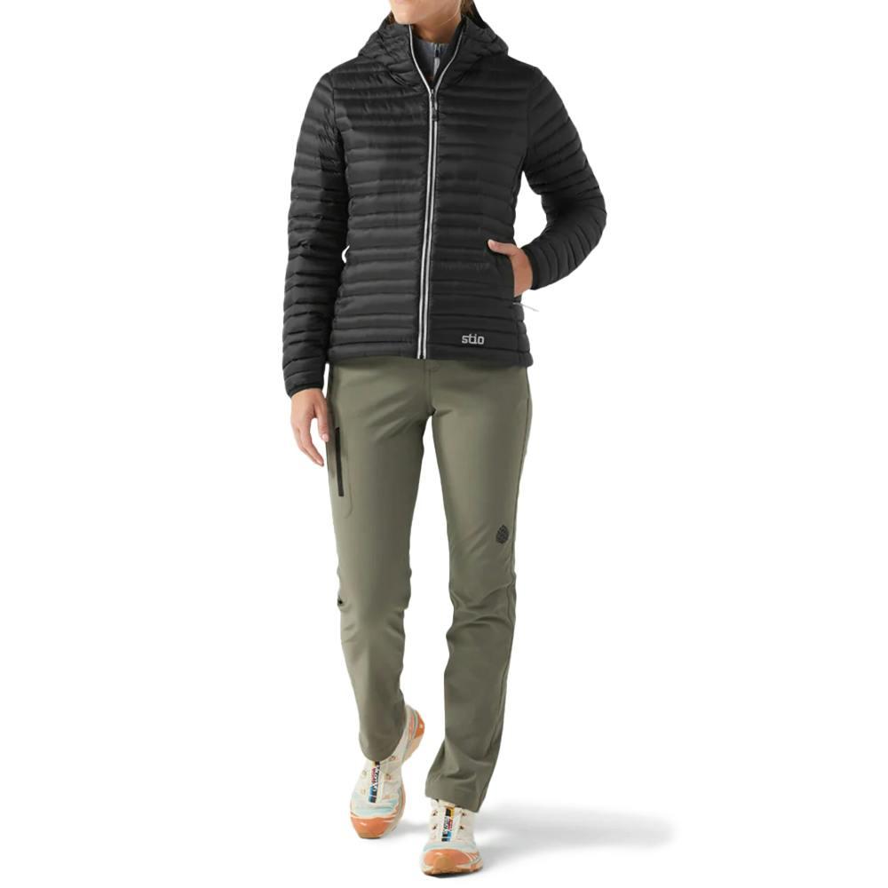 The Stio Women's Pinion Down Hooded Jacket is a pinnacle of responsible and sustainable performance. Certified by the Responsible Down Standard, it features AlliedFeather™ HyperDRY™ Water Repellent Down, offering ultralight warmth with White Goose Down. The regular fit, fixed hood with halo adjust, and YKK® Vislon® zipper ensure versatile and low-profile protection. Additional highlights include a custom Stio® silicone puller, an interior security pocket that doubles as a stuff pocket, and included embroidered for a touch of style.