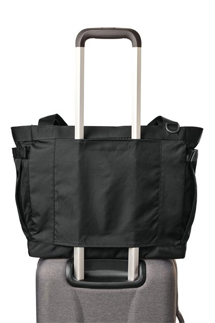 Carry it your way with The North Face 25L Travel Tote—a lightweight, do-it-all tote built for commuting, travel, and everyday organization. Made from durable 100% recycled nylon ripstop with a non-PFC DWR finish, it’s ready for busy days and unpredictable weather. Use the dual handles for duffel-style carry or clip on the removable shoulder strap for comfortable over-the-shoulder or crossbody wear. Inside, a zippered main compartment fits larger essentials, while a padded laptop sleeve protects most 16" devices. Extra storage—including a secure-zip mesh pocket and stretch water bottle pockets—keeps everything neatly in place. Finished with a luggage pass-through and 360° reflectivity, this travel tote is a smart, versatile companion from airport to office.