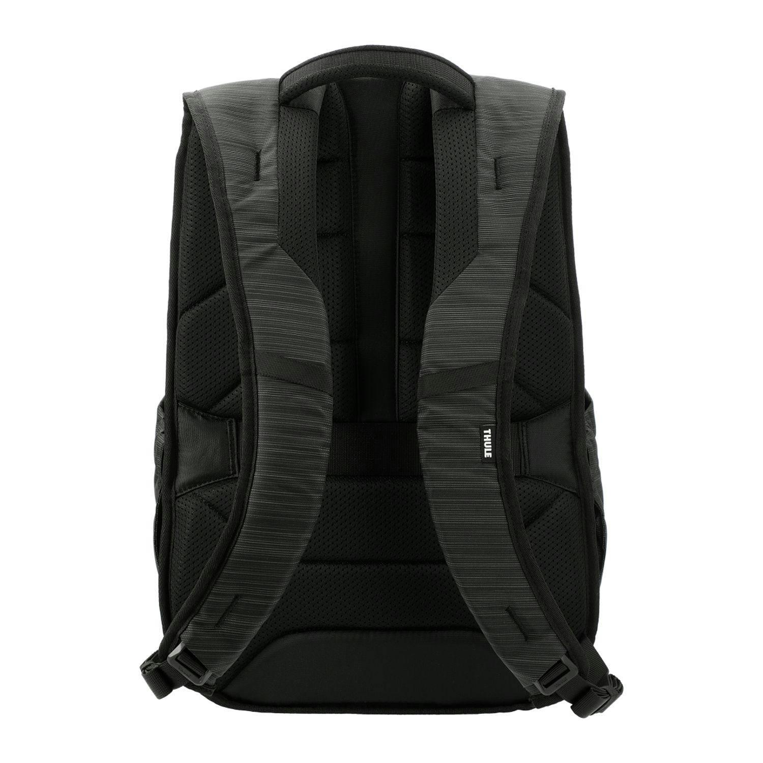 The Thule Construct 24L Backpack is a functional backpack with just the right amount of storage, organization, and casual style to transition from the work week to the weekend. Protect a laptop up to 15.6" in the elevated, padded pocket and a tablet up to 10.5" in the dedicated soft-lined pocket. You can keep a phone or glasses safe in the soft-lined protective pocket and store a jacket in the expandable front stash pocket. Get extra storage with the organization panel with multiple pockets and the internal zipped mesh pocket. You’ll be able to quickly access water bottles or store accessories in the expandable side pocket and securely attach your backpack to rolling luggage with the pass-through strap. This backpack is constructed with durable materials, custom metal accents, and YKK zippers. Carry in comfort with a padded back panel with air mesh materials and a padded carry handle.