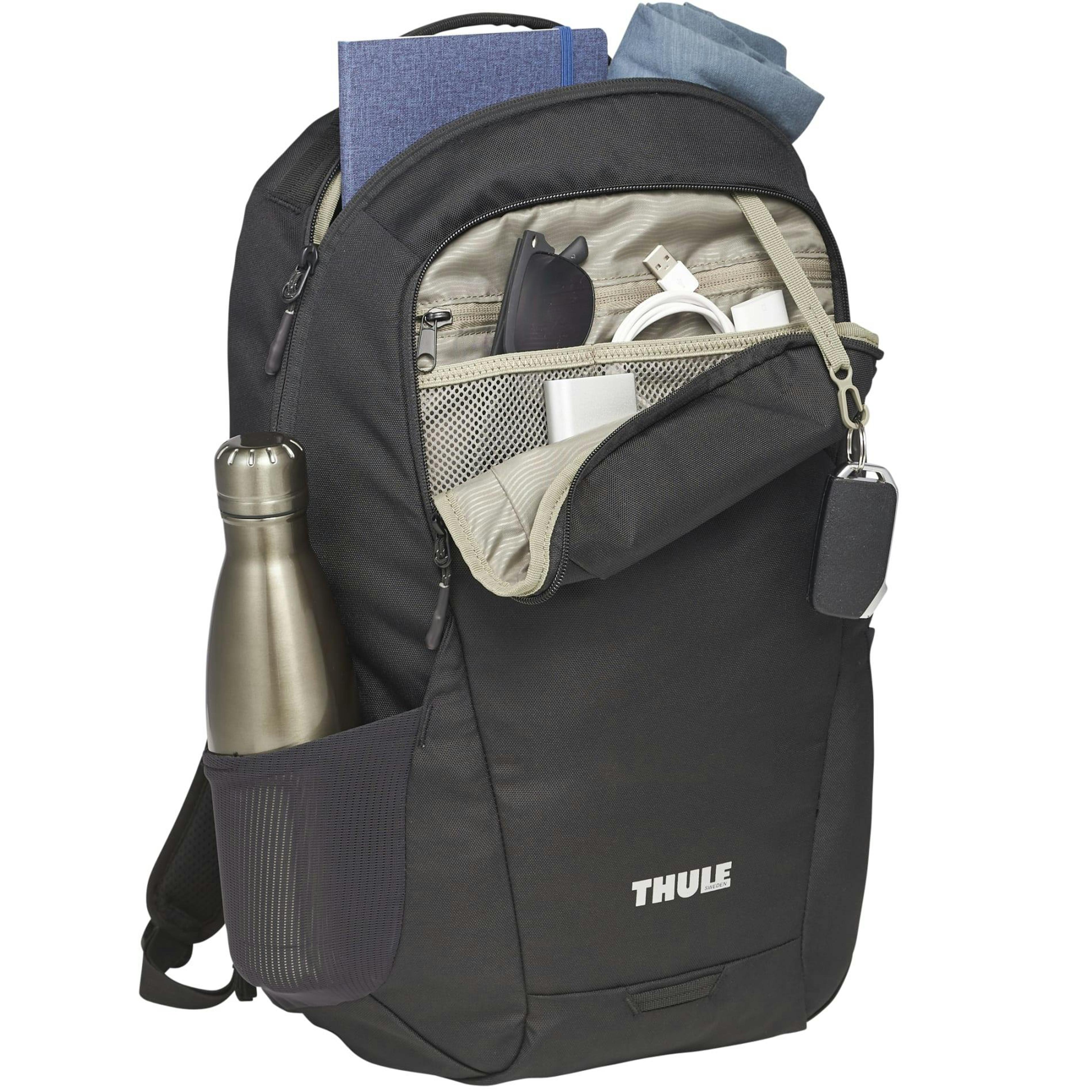 The Thule Lumion 15" Computer Backpack 21L is made from recycled polyester and exclusively designed for PCNA. This backpack includes a front zippered pocket for organization as well as a larger zippered compartment featuring a padded, 15" laptop sleeve. The top carry handle allows you to grab and go while the padded back panel provides lower lumbar support. A side water bottle pocket and daisy chain webbing are bonus features of this backpack.