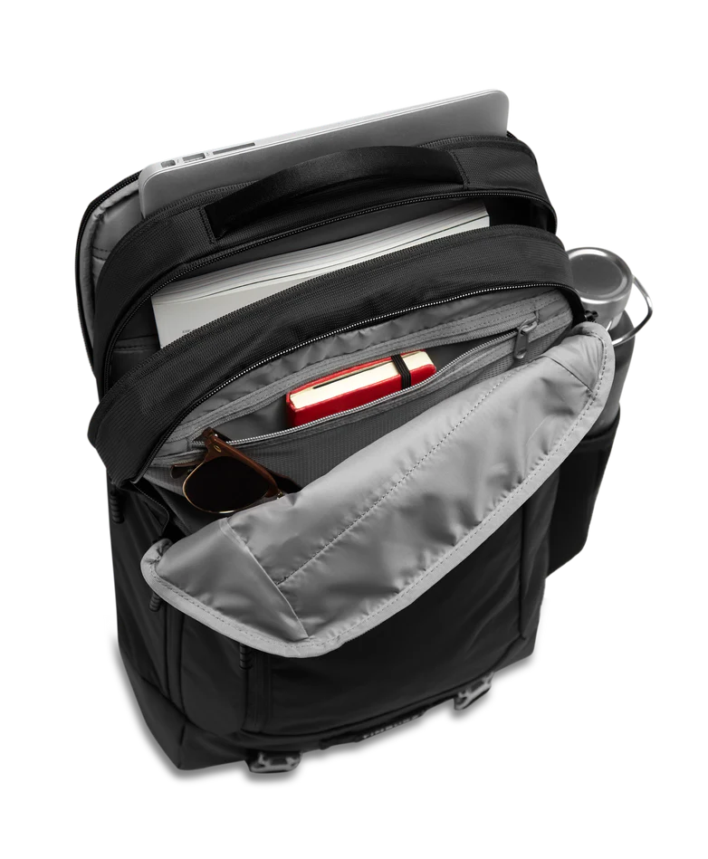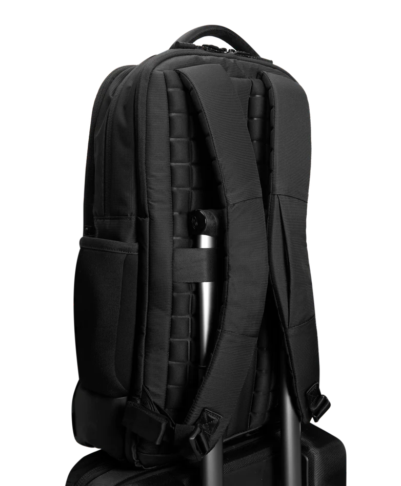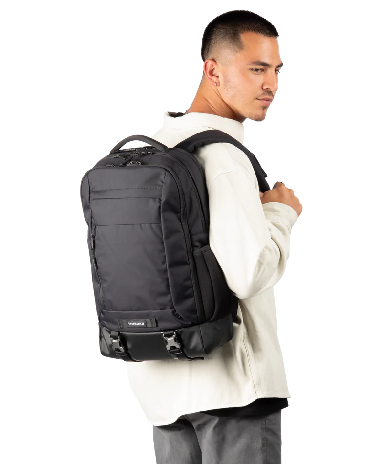 Travel smarter with the Timbuk2 Authority Laptop Backpack Deluxe, designed for comfort, safety, and sustainable performance. A luggage pass-through easily secures the pack to rolling suitcases, making airport and business travel seamless. Padded shoulder straps and an airmesh ventilated back panel deliver breathable, all-day comfort on the move. Built-in reflective tape under the compression straps boosts visibility in low-light conditions for added safety. Crafted from 100% recycled nylon made from pre-consumer materials and backed by a lifetime warranty, this durable backpack is ideal for commuting, travel, work, and everyday carry.