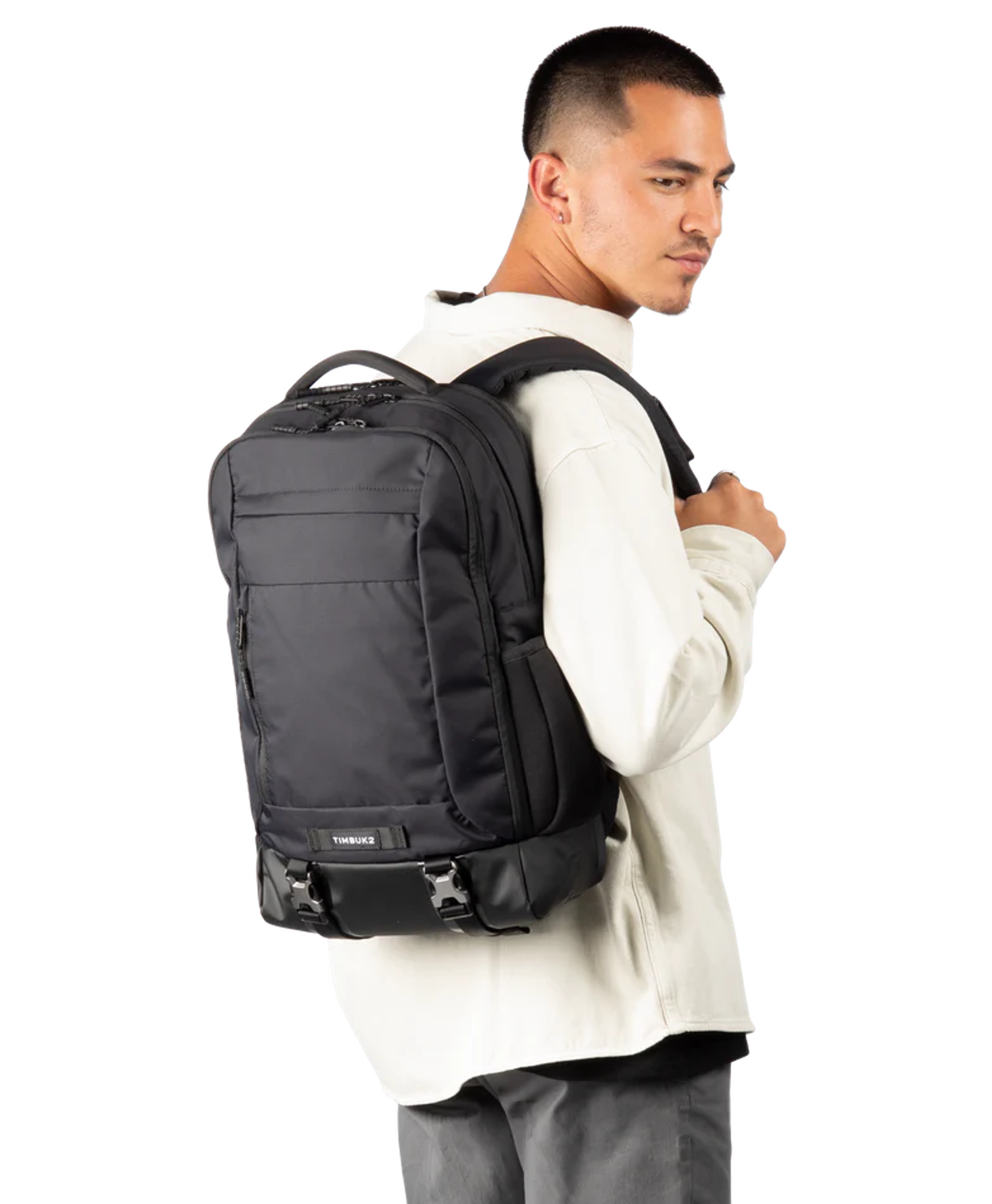 Travel smarter with the Timbuk2 Authority Laptop Backpack Deluxe, designed for comfort, safety, and sustainable performance. A luggage pass-through easily secures the pack to rolling suitcases, making airport and business travel seamless. Padded shoulder straps and an airmesh ventilated back panel deliver breathable, all-day comfort on the move. Built-in reflective tape under the compression straps boosts visibility in low-light conditions for added safety. Crafted from 100% recycled nylon made from pre-consumer materials and backed by a lifetime warranty, this durable backpack is ideal for commuting, travel, work, and everyday carry.