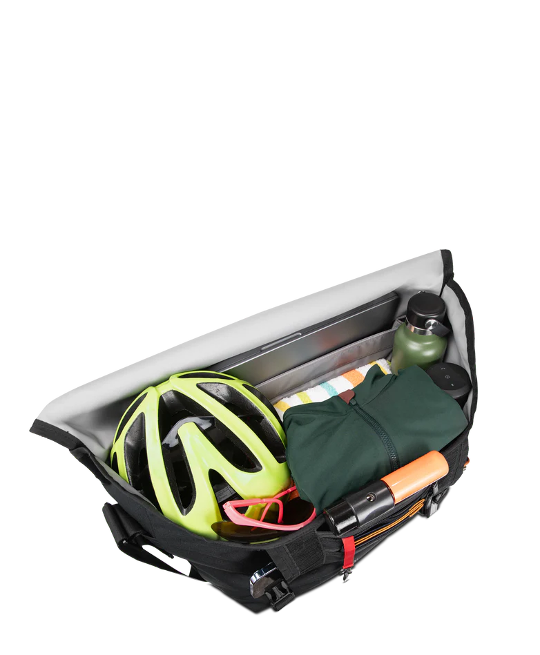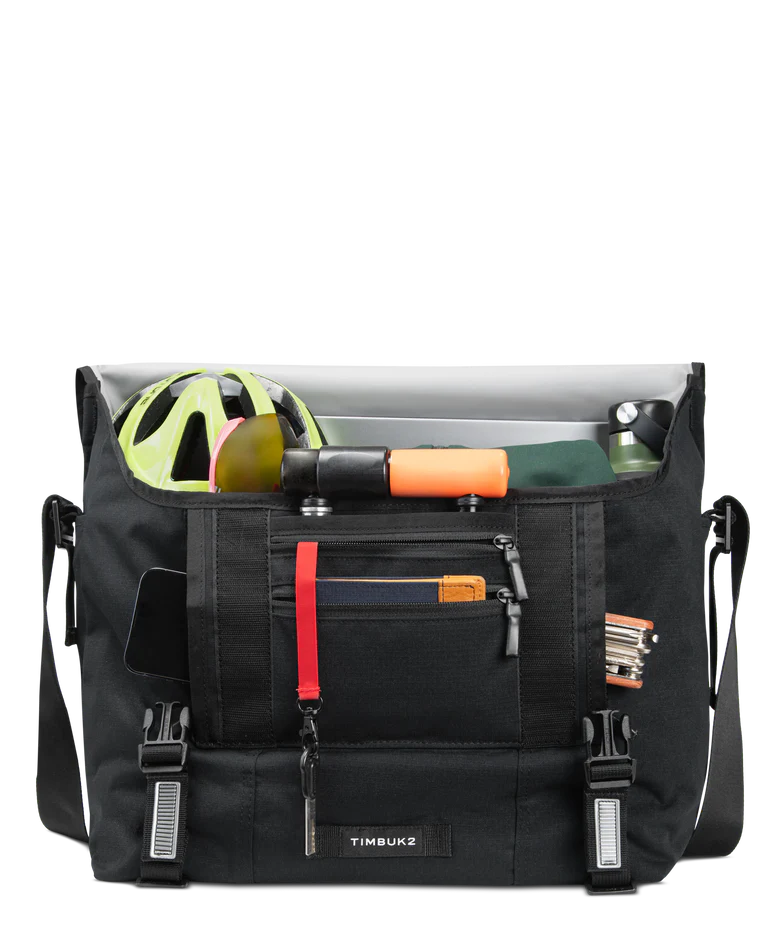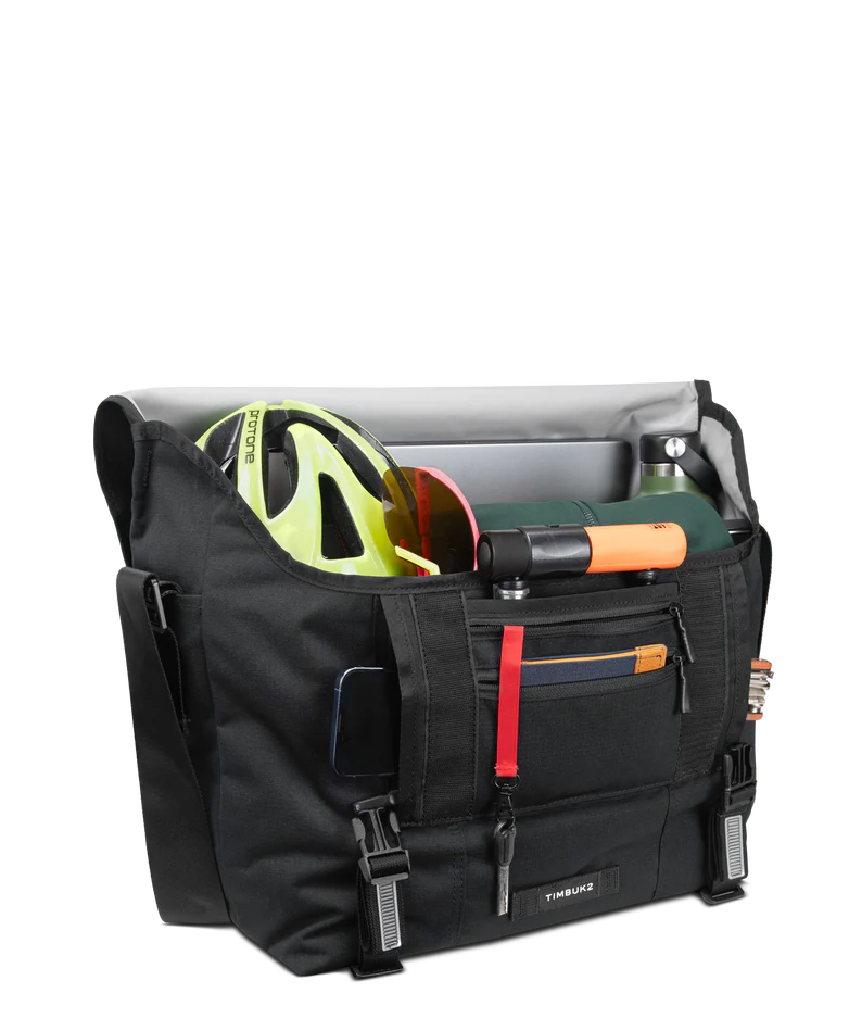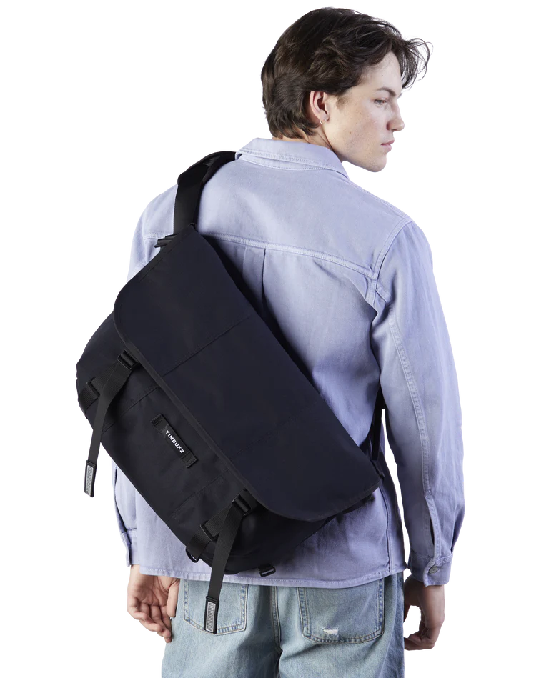 Built to handle bigger loads without weighing you down, the Timbuk2 Flight Classic Messenger Bag – Large delivers rugged performance with everyday comfort. Made from 300D Eco Ripstop fabric using 100% recycled polyester, this durable messenger resists water and tearing, while a weatherproof exterior and waterproof TPU liner help protect your gear in unpredictable conditions. Designed for all-day wear, it features an OrthoLite® foam shoulder pad, a quick-adjust aircraft-grade aluminum buckle, and a switchable shoulder strap for right- or left-handed carry. Smart organization includes a dual-side vertical zip pocket for fast access, a spacious interior with extra compartments, dual water bottle pockets, and tech storage for up to a 17" laptop. Ideal for commuting, travel, work, and heavy daily carry, this versatile messenger is built to perform wherever you go.
