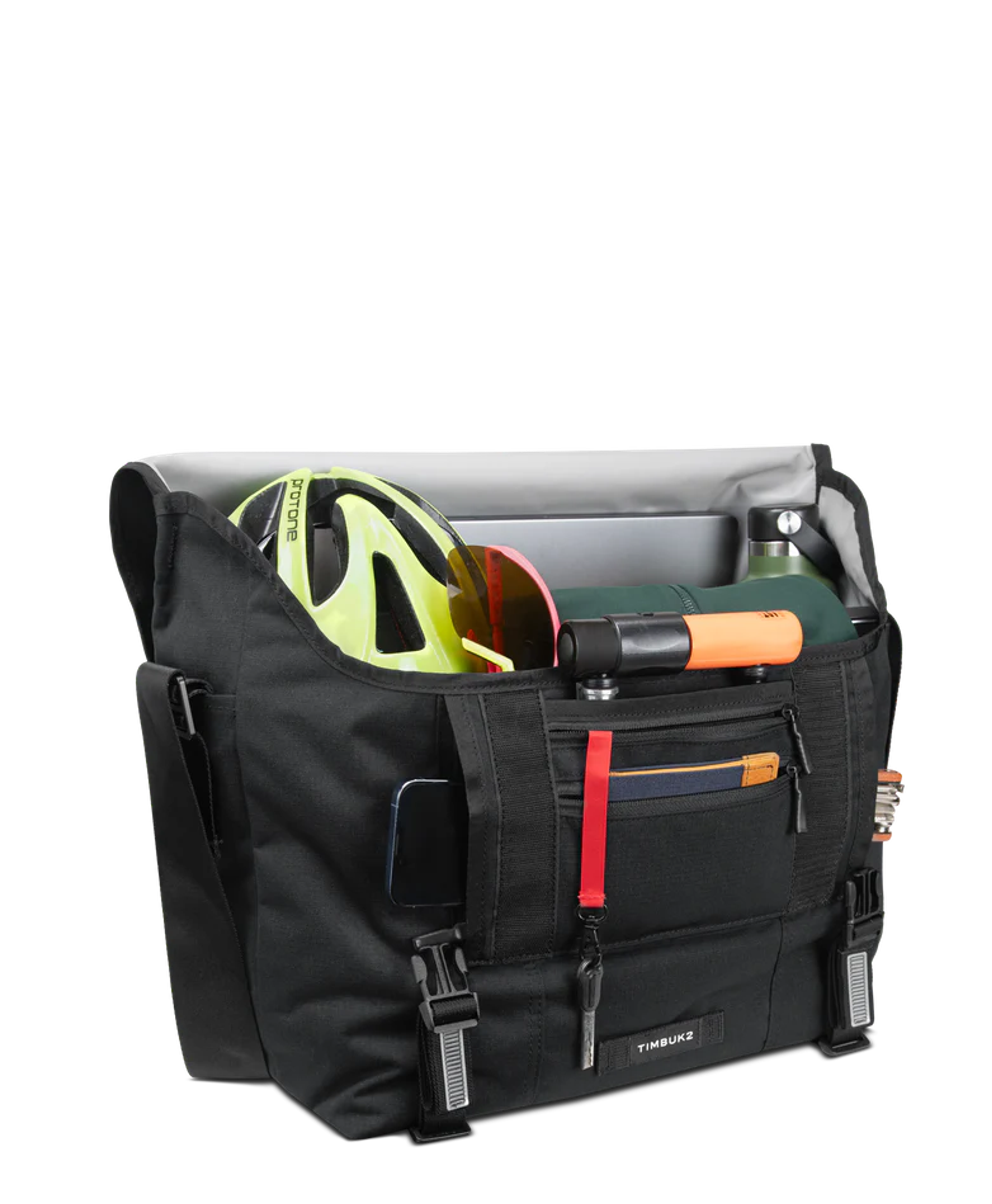 Built to handle bigger loads without weighing you down, the Timbuk2 Flight Classic Messenger Bag – Large delivers rugged performance with everyday comfort. Made from 300D Eco Ripstop fabric using 100% recycled polyester, this durable messenger resists water and tearing, while a weatherproof exterior and waterproof TPU liner help protect your gear in unpredictable conditions. Designed for all-day wear, it features an OrthoLite® foam shoulder pad, a quick-adjust aircraft-grade aluminum buckle, and a switchable shoulder strap for right- or left-handed carry. Smart organization includes a dual-side vertical zip pocket for fast access, a spacious interior with extra compartments, dual water bottle pockets, and tech storage for up to a 17" laptop. Ideal for commuting, travel, work, and heavy daily carry, this versatile messenger is built to perform wherever you go.