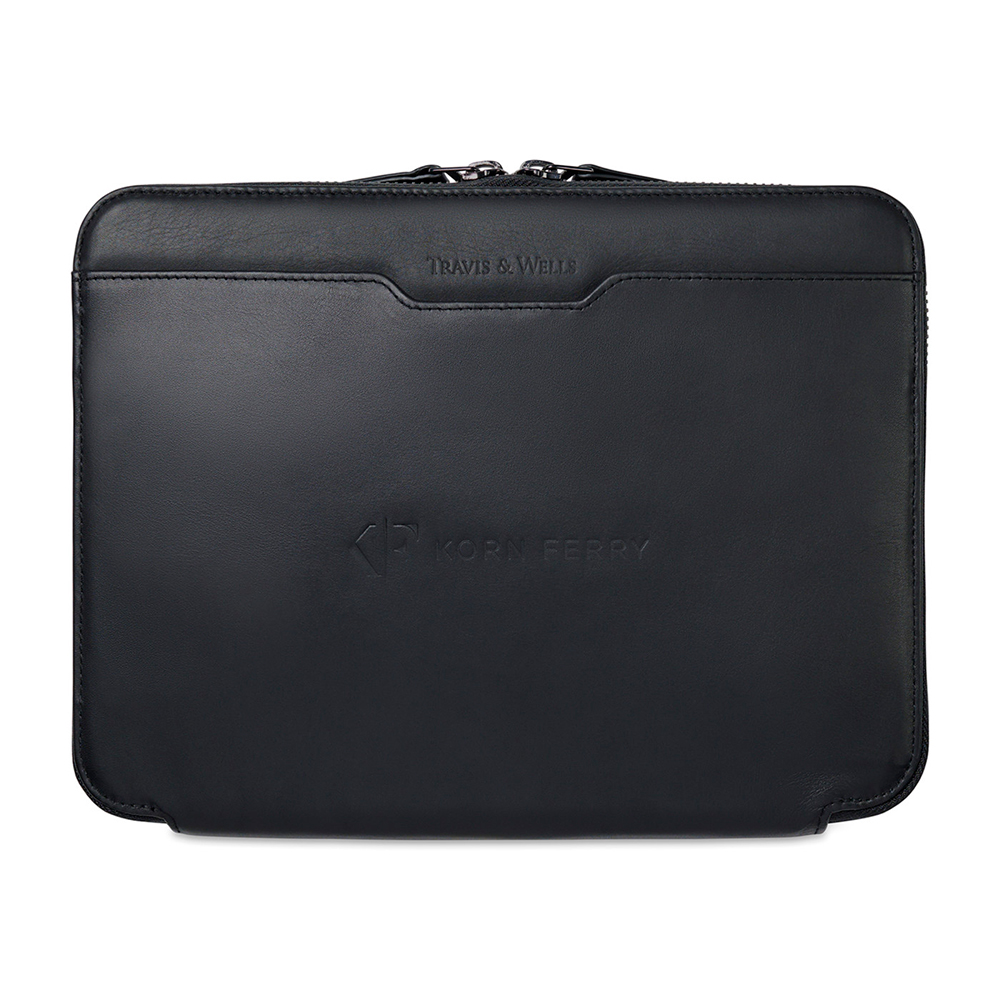 Keep your tech essentials polished and protected with the Travis & Wells® Envoy Junior Tech Folio, designed for modern professionals on the move. Crafted from soft top-grain leather, this sleek folio delivers a refined look that’s perfect for meetings, travel, and everyday work. A secure gunmetal zipper closure keeps everything in place, while suede-lined pockets protect your phone and tablet (up to 10"). Thoughtful organization—including interior card slots, a front slash pocket, and a leather-covered pen loop—ensures quick access to what you need. PVC-free and presented in a premium branded gift box, it’s an ideal choice for executive use or elevated corporate gifting.