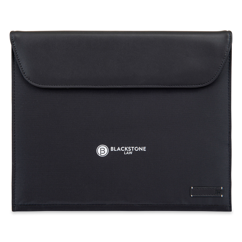 Organize every meeting with confidence using the Travis & Wells® Lennox Padfolio, a modern essential that blends polished style with sustainable design. Made from recycled nylon with premium vegan leather accents, this sleek padfolio features a magnetic top closure to keep contents secure and a high-quality ruled notepad for effortless note-taking. Inside, smart organization includes a document sleeve, elastic storage panel, and card slots to keep business essentials neatly in place, while an elastic pen loop ensures your pen is always within reach. Lightweight, PVC-free, and packaged in a premium Travis & Wells® gift box, it’s an ideal choice for meetings, travel, corporate gifting, and everyday professional use.