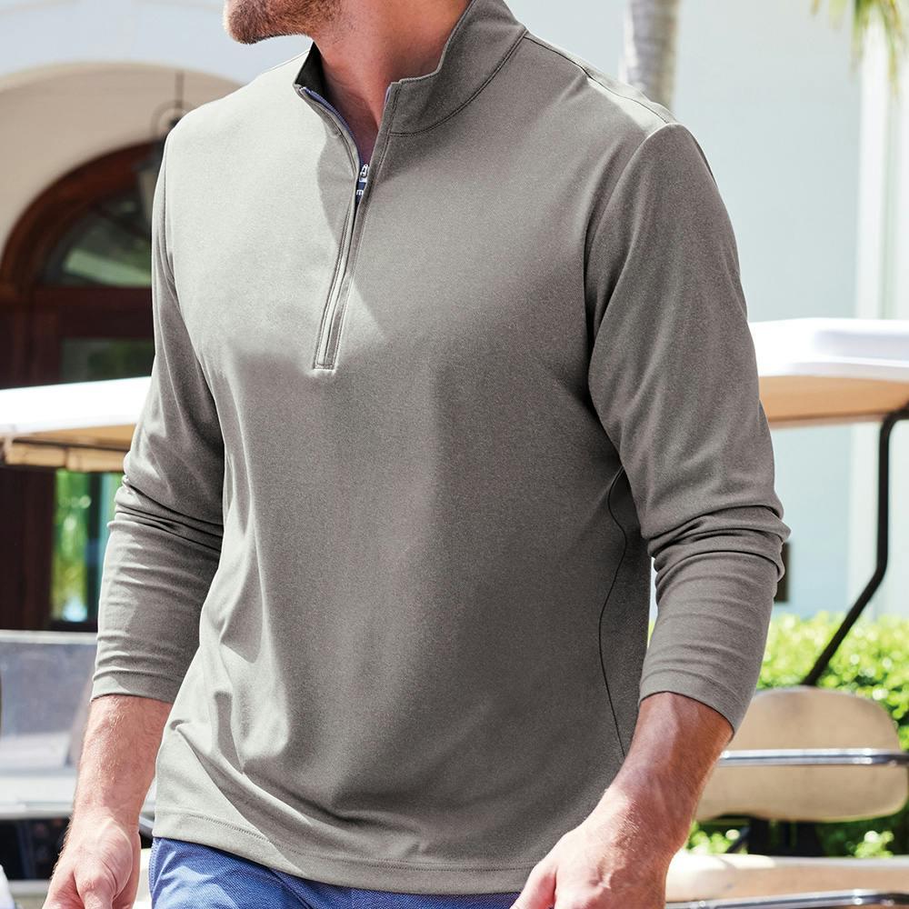 Ideal for the man on the move, the TravisMathew Coto Performance Quarter-Zip is a versatile men’s performance pullover that’s at home on business trips, the golf course, or date night. Lightweight 4.1 oz 100% polyester construction delivers wrinkle-resistant, quick-drying comfort with 4-way stretch, while the zip-through collar, kissing welt zipper with TM logo pull and branded neck detail keep it sharp. Packs easily, moves with you, and keeps you looking polished through travel and long days. *Please note this product is only available to be shipped within the United States*
