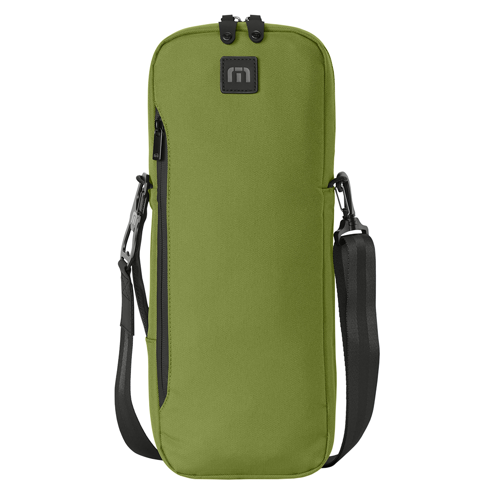 Keep drinks cold and style on point with the TravisMathew Gimme Cooler, a slim, portable cooler designed for the golf course, outings, and on-the-go refreshment. Made from durable 600D polyester with a water-repellent finish, it protects contents while delivering lightweight performance. The fully insulated main compartment holds up to six 12-ounce cans or two wine bottles—perfect for a round of golf, tailgates, or casual adventures. Carry it your way with the padded side handle or detachable shoulder strap, complete with a built-in bottle opener for added convenience. Finished with a front storage pocket and signature TravisMathew branding, this compact cooler blends function, durability, and laid-back style.
