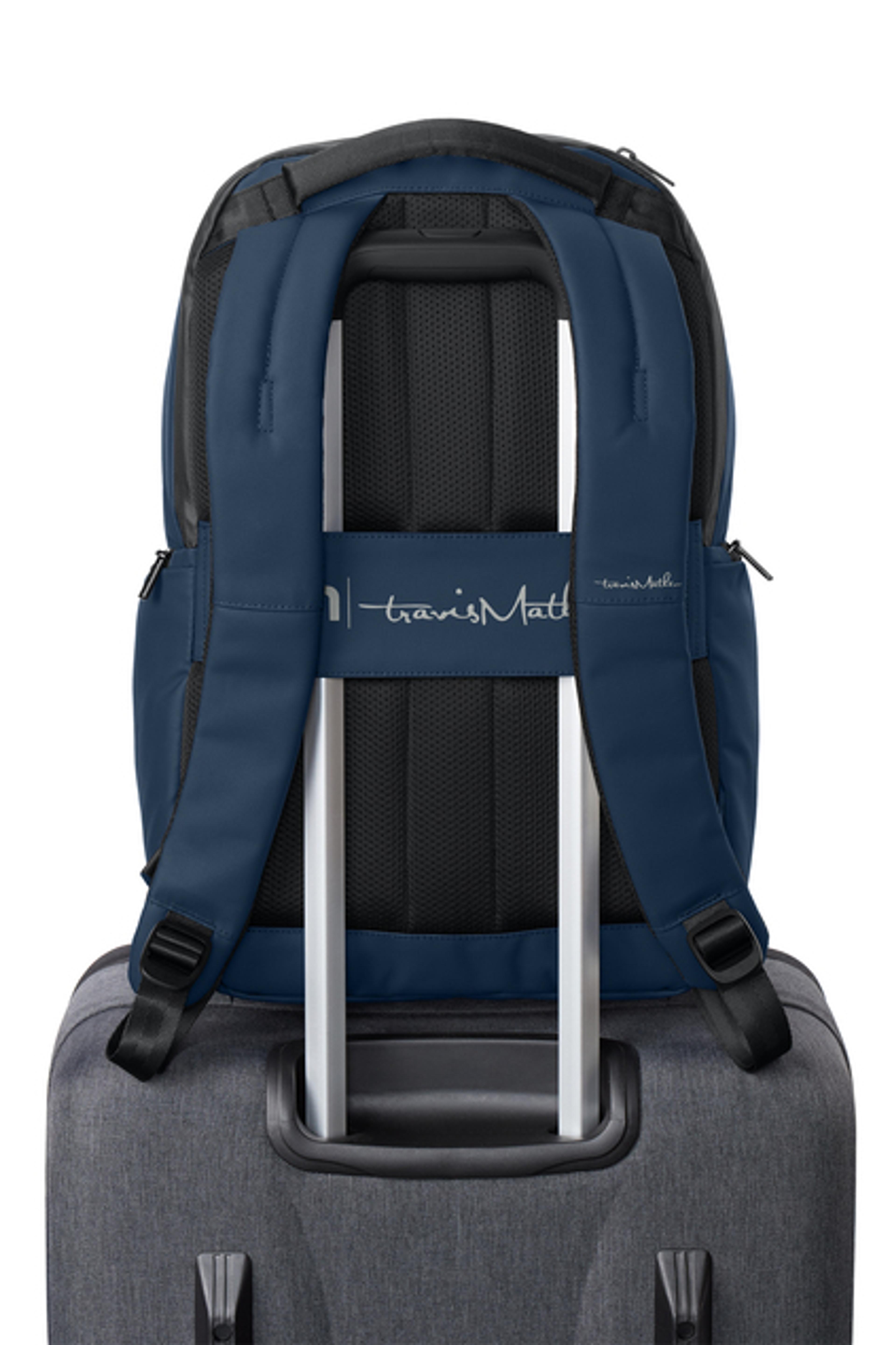 Handle workdays and weekends with ease using the TravisMathew Recess Backpack, a sleek, versatile pack built for everyday performance. Made from durable 600D coated poly PU, it offers a roomy interior with dedicated padded sleeves for your laptop and tablet, keeping tech protected and organized on the go. Designed for comfort and convenience, it features padded shoulder straps, a tricot-lined zip pocket to safeguard valuables, side zip water bottle sleeves, and a large front zip pocket for quick-access essentials. An integrated luggage trolley pass-through makes travel simple, while premium details like metal zipper pulls and a rubberized logo patch add a polished finish. Ideal for commuting, travel, work, and daily carry.