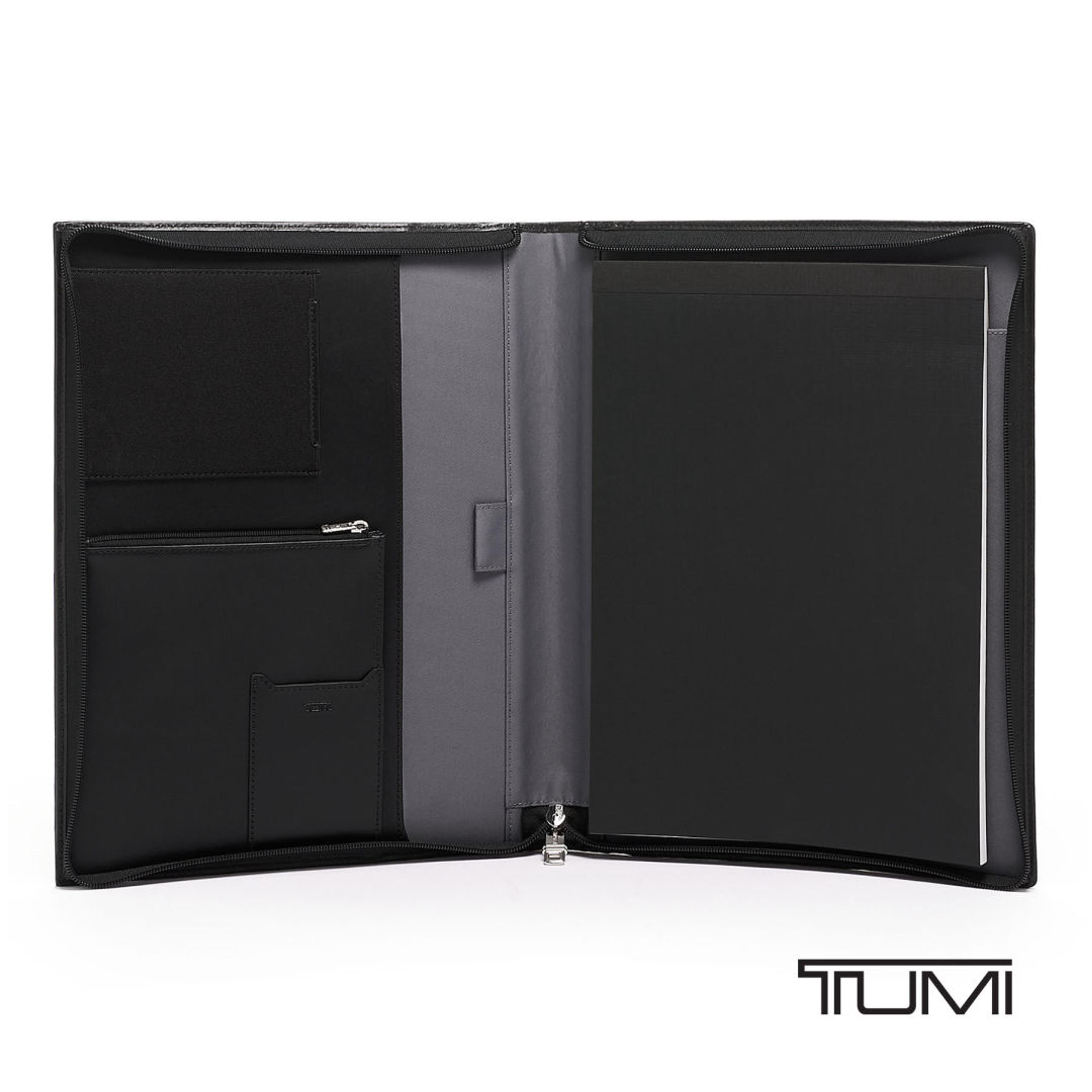 Stay organized and professional wherever work takes you with the TUMI Alpha SLG Zip Around Letter Pad. Designed for meetings, travel, and everyday business use, this sleek organizer features a secure zip-around closure that keeps important documents and essentials protected on the go. A dedicated notepad sleeve ensures you’re always ready to capture ideas, notes, or action items. Inside, smart storage—including card pockets, a pen loop, an interior zip pocket, and media storage—keeps everything neatly arranged and easy to access. Ideal for executives, sales professionals, and corporate gifting, this letter pad delivers polished functionality with signature TUMI style.