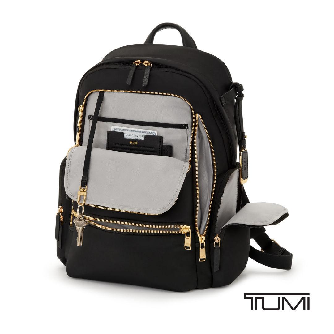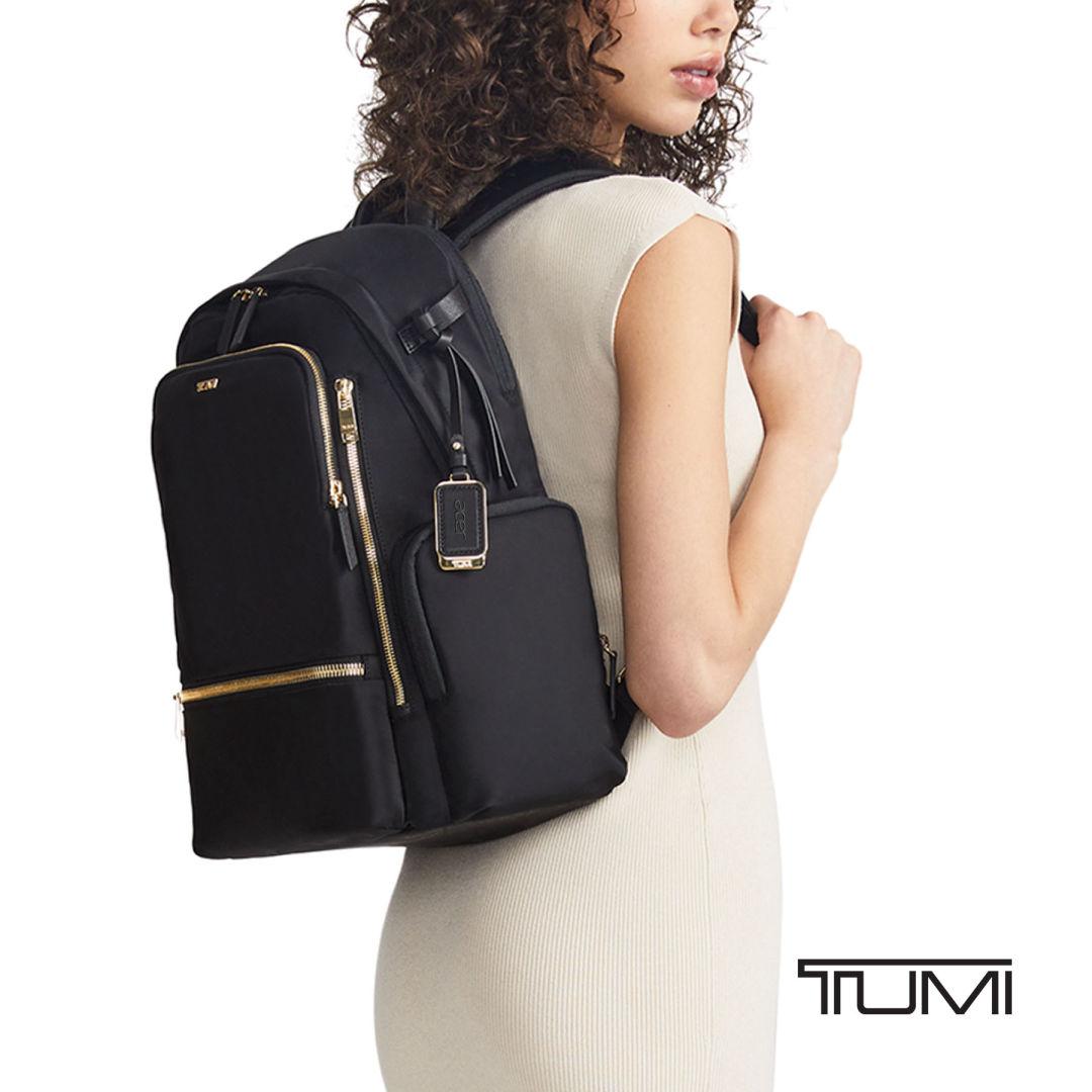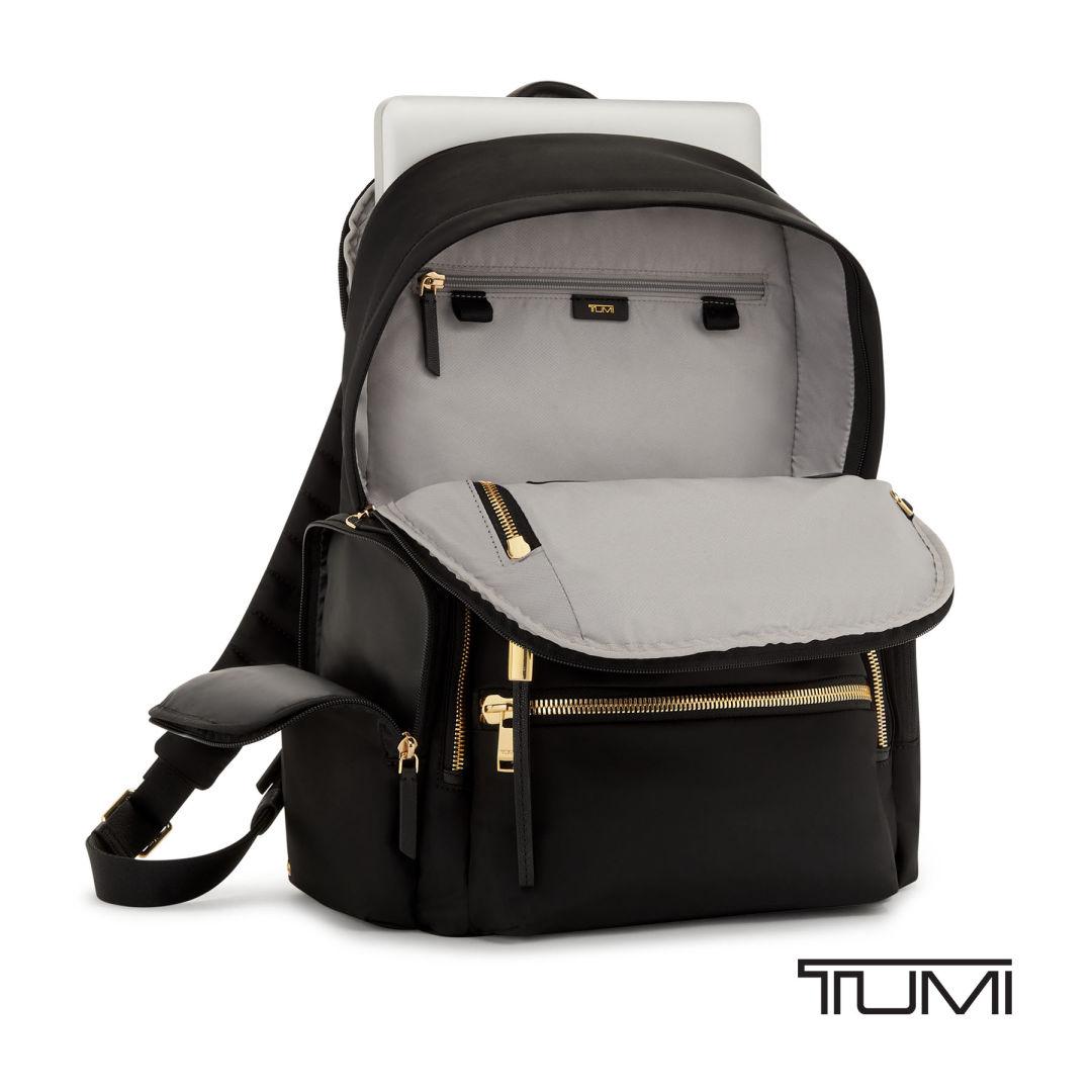 Travel smarter with the TUMI Voyageur Celina Backpack, designed to balance sleek style, smart organization, and everyday durability. Crafted from premium nylon with a lightweight yet structured build, this backpack is ideal for commuting, business travel, and weekend getaways. A padded laptop compartment protects devices up to a 15" PC or 16" MacBook, while multiple zip pockets keep essentials organized and within easy reach. Comfort-forward features like padded adjustable backpack straps, a quick-access phone pocket, and an Add-a-Bag strap make navigating busy days effortless. Finished with leather accents, water-resistant storage, and TUMI Tracer® for added security, this versatile backpack delivers polished performance wherever work or travel takes you.