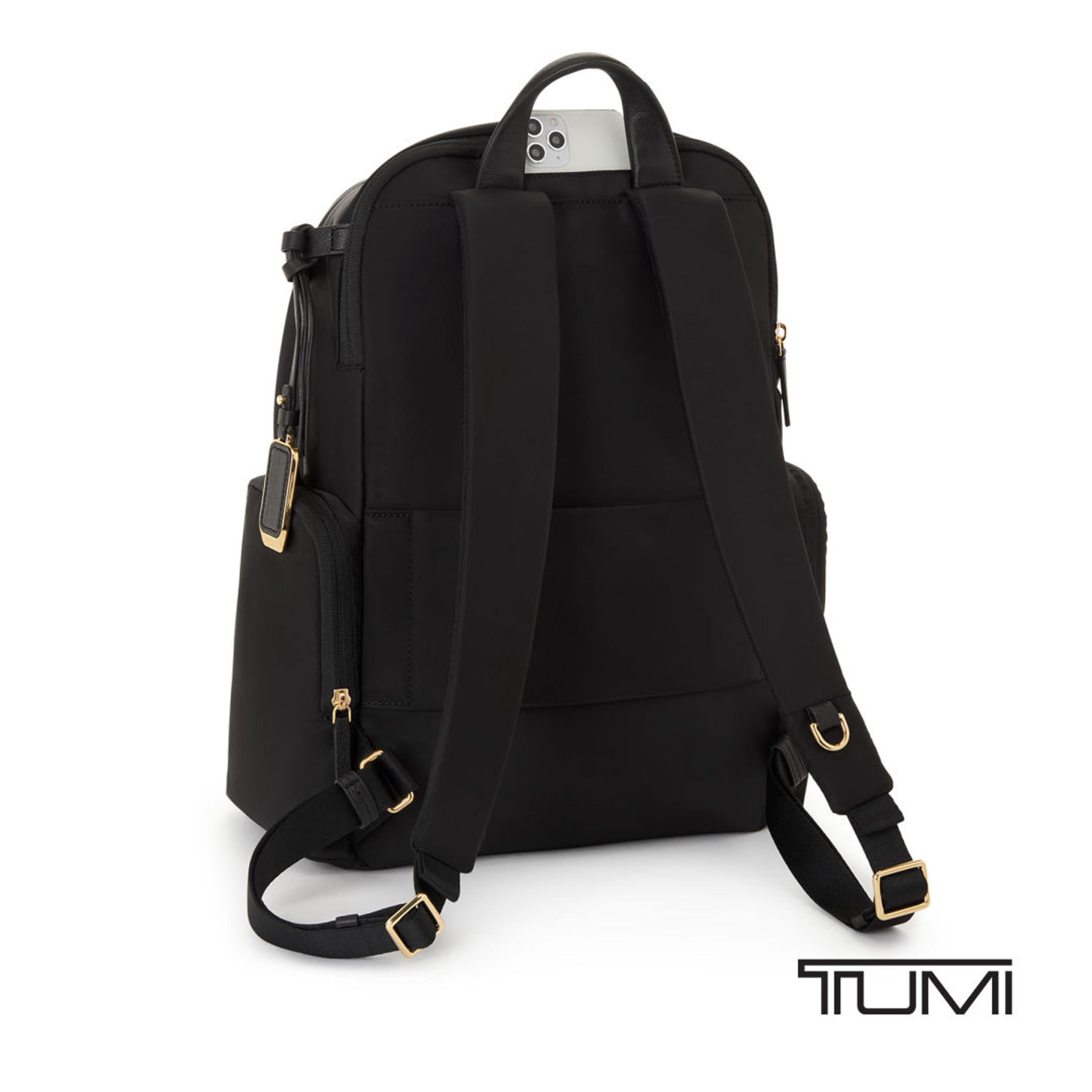 Travel smarter with the TUMI Voyageur Celina Backpack, designed to balance sleek style, smart organization, and everyday durability. Crafted from premium nylon with a lightweight yet structured build, this backpack is ideal for commuting, business travel, and weekend getaways. A padded laptop compartment protects devices up to a 15" PC or 16" MacBook, while multiple zip pockets keep essentials organized and within easy reach. Comfort-forward features like padded adjustable backpack straps, a quick-access phone pocket, and an Add-a-Bag strap make navigating busy days effortless. Finished with leather accents, water-resistant storage, and TUMI Tracer® for added security, this versatile backpack delivers polished performance wherever work or travel takes you.