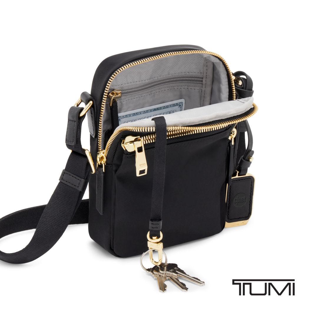 Travel light without sacrificing organization with the TUMI Voyageur Persia Crossbody, a sleek vertical bag designed for everyday use and on-the-go travel. Its compact profile comfortably holds essentials like your phone, passport, wallet, and keys, while the double-zip main compartment and front zip pocket provide quick, easy access. A back open pocket keeps tickets or receipts within reach for stress-free movement. The adjustable crossbody strap offers comfortable, hands-free wear, and refined details like the detachable leather charm add a polished finish. Inside, smart organization—including card slots, a leather card pocket, a zip pocket, and a key leash—keeps everything secure. Finished with TUMI Tracer® for added peace of mind, this crossbody is ideal for travel, commuting, and everyday errands.