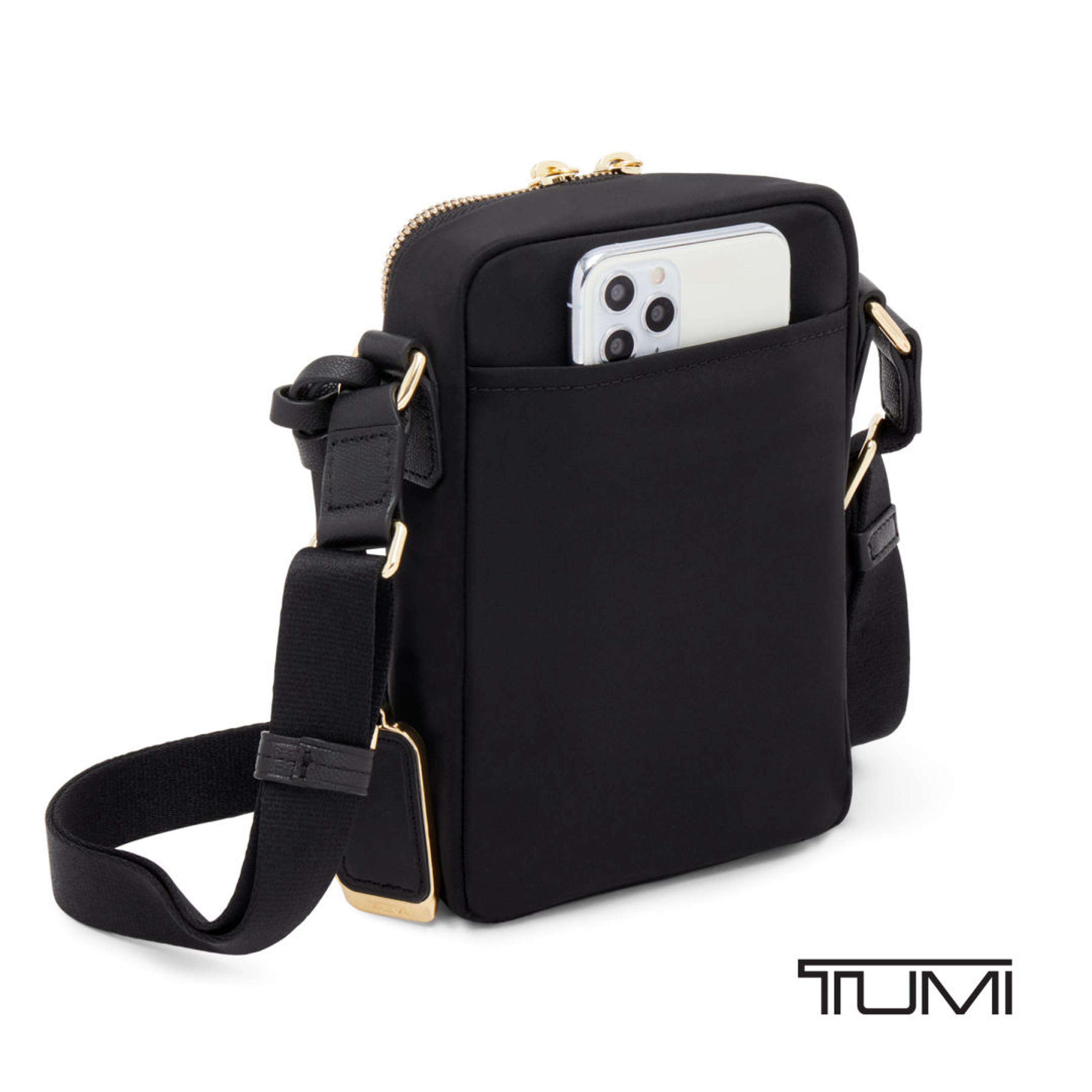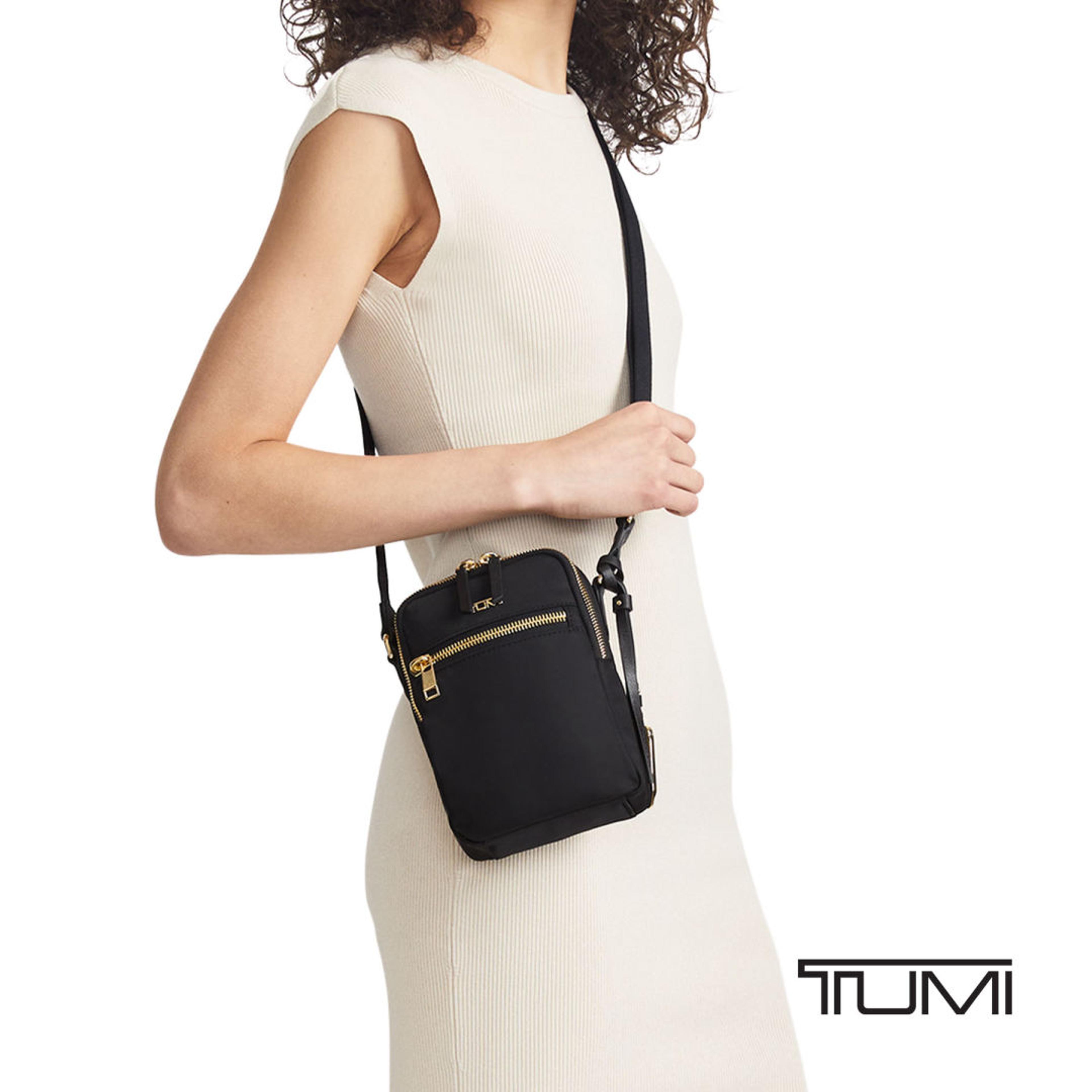 Travel light without sacrificing organization with the TUMI Voyageur Persia Crossbody, a sleek vertical bag designed for everyday use and on-the-go travel. Its compact profile comfortably holds essentials like your phone, passport, wallet, and keys, while the double-zip main compartment and front zip pocket provide quick, easy access. A back open pocket keeps tickets or receipts within reach for stress-free movement. The adjustable crossbody strap offers comfortable, hands-free wear, and refined details like the detachable leather charm add a polished finish. Inside, smart organization—including card slots, a leather card pocket, a zip pocket, and a key leash—keeps everything secure. Finished with TUMI Tracer® for added peace of mind, this crossbody is ideal for travel, commuting, and everyday errands.