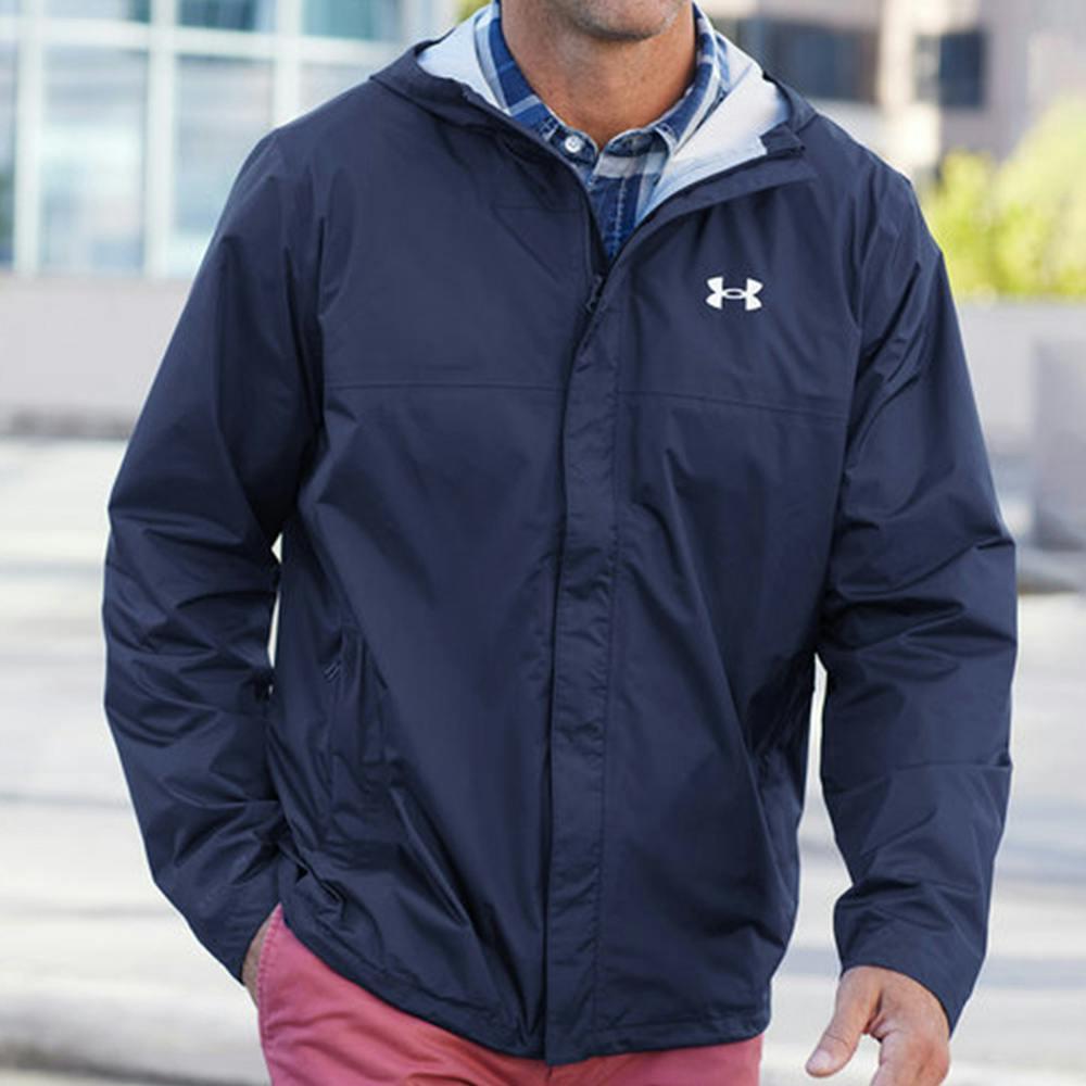 Under Armour Stormproof Cloudstrike 2.0 Jacket — a lightweight, waterproof jacket built for wet-weather performance. Made from 100% nylon with UA Storm technology and a 2.5‑layer bonded, fully taped construction, it repels rain while staying breathable so staff, teams, and clients stay comfortable on the move. Practical details include an adjustable bungee on the hood, secure zip hand pockets, and a drawcord hem for a custom fit; the fuller cut allows freedom of movement over layers. Ideal as branded rainwear for corporate giveaways, outdoor events, or everyday commuting — add your logo or design to create a high-impact promotional jacket that keeps recipients dry and comfortable. Keywords: waterproof jacket, rain jacket, breathable, customizable.