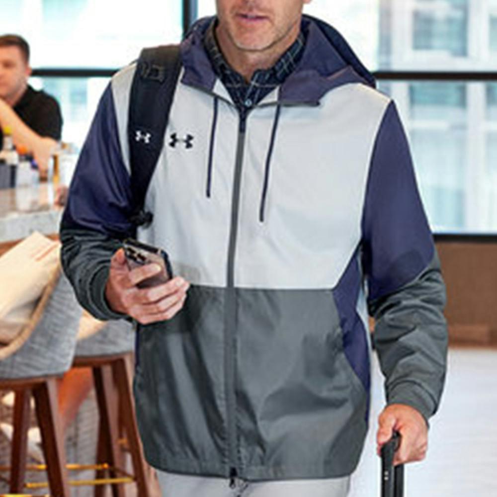 With UA Storm technology, this Under Armour Team Legacy Jacket repels water while maintaining breathability, keeping you dry and comfortable in any weather. The wind-resistant construction shields you from harsh elements, and the adjustable hood with an extended brim enhances coverage. With a full mesh lining for added breathability, secure-zip hand pockets, ribbed cuffs, and a heat-sealed logo, this jacket offers both style and functionality. The dropped-shaped hem and internal locker loop add extra convenience and comfort. Just add a design or logo and let this jacket do the rest.
