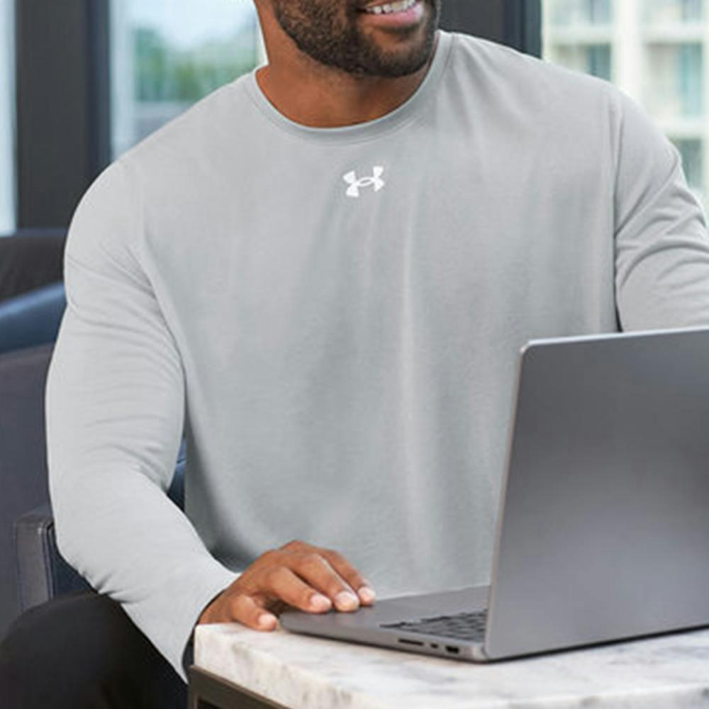 The Under Armour Team Tech Long Sleeve T-Shirt is the ideal athletic companion for performance and comfort. Crafted with 100% recycled polyester, this shirt offers moisture-wicking properties that keep you dry and fresh during intense workouts. The anti-odor technology prevents the growth of odor-causing microbes, ensuring you stay odor-free throughout your activities. Made with Tech Fabric, this shirt is quick-drying, ultra-soft, and provides a natural feel for ultimate comfort. Elevate your athletic performance with the Under Armour Team Tech Long Sleeve T-Shirt.