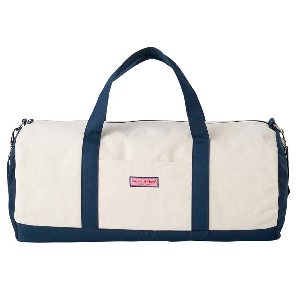 This classic heritage duffe is crafted from 100% cotton canvas for a durable, timeless look. Designed with a strong canvas body, it features a water-resistant bottom and interior to help protect your belongings. A removable strap and double canvas handles offer versatile carrying options, while an interior pocket adds smart storage. Finished with a vineyard vines® logo box label at the front pocket, it’s a dependable bag built for travel and everyday use.