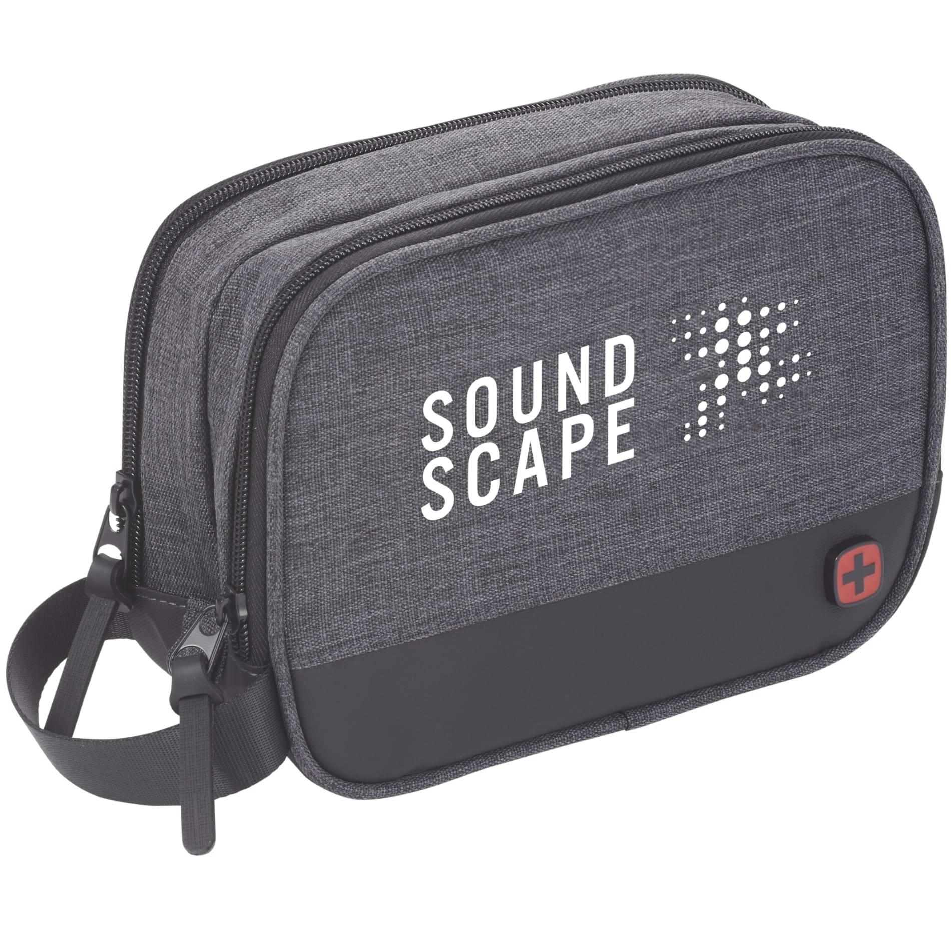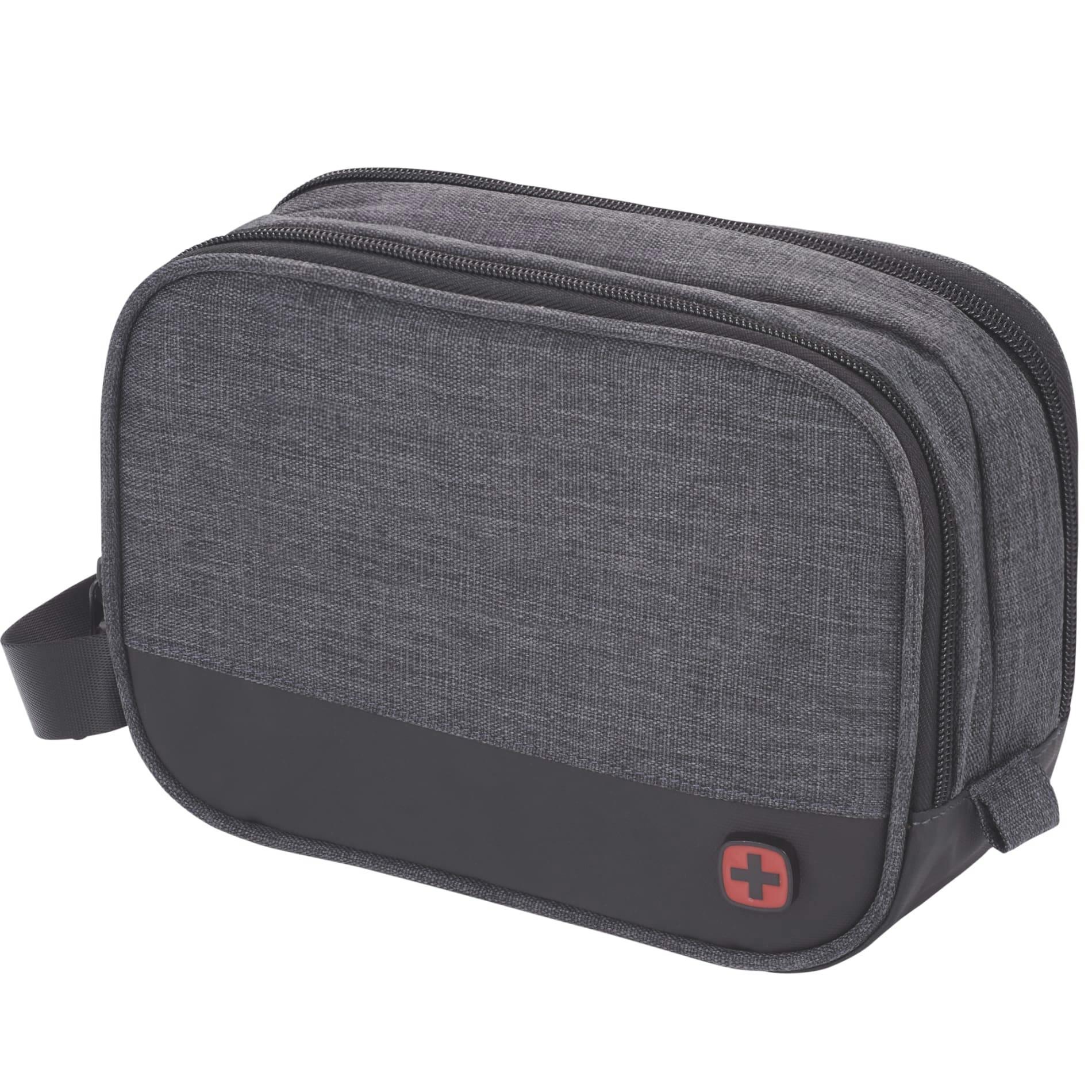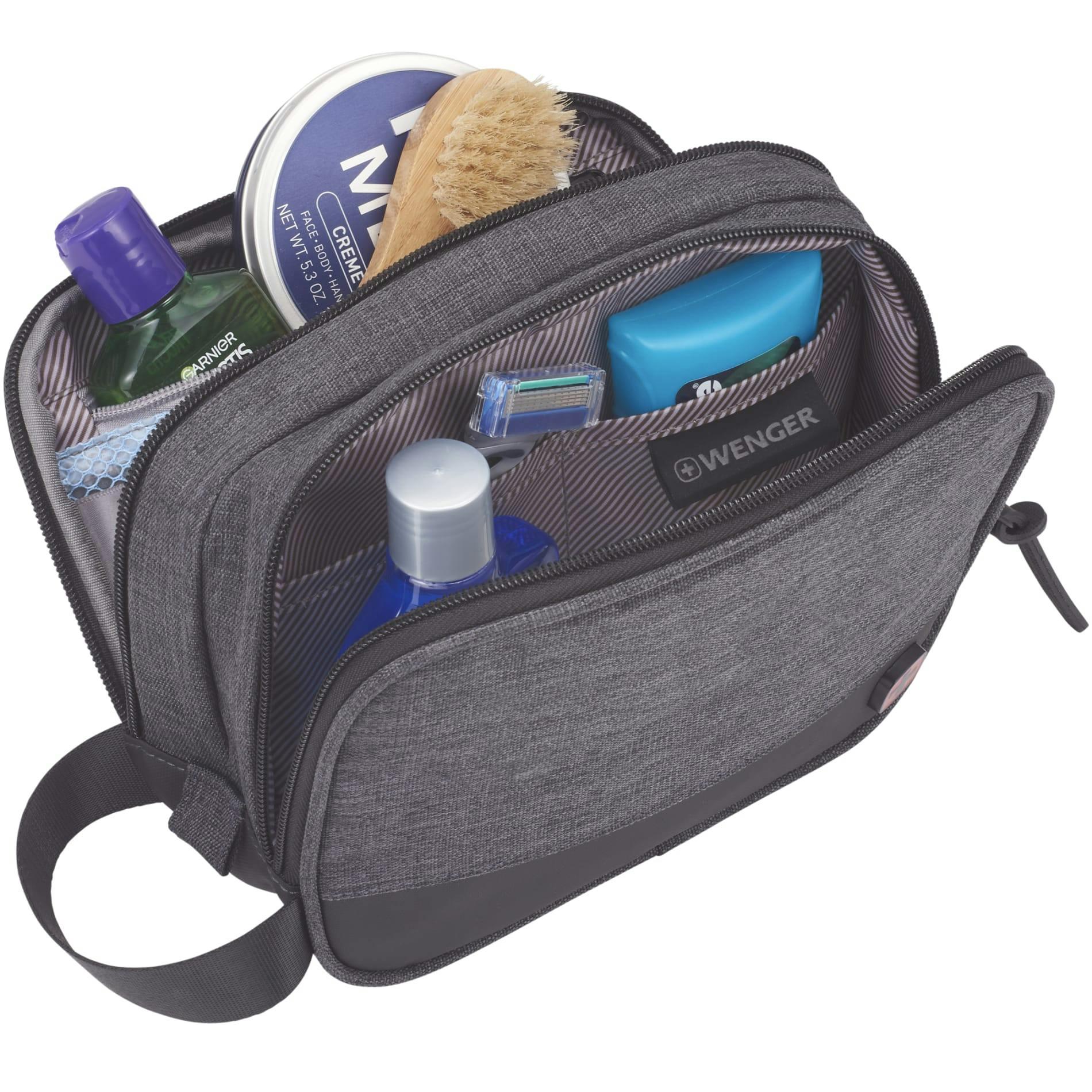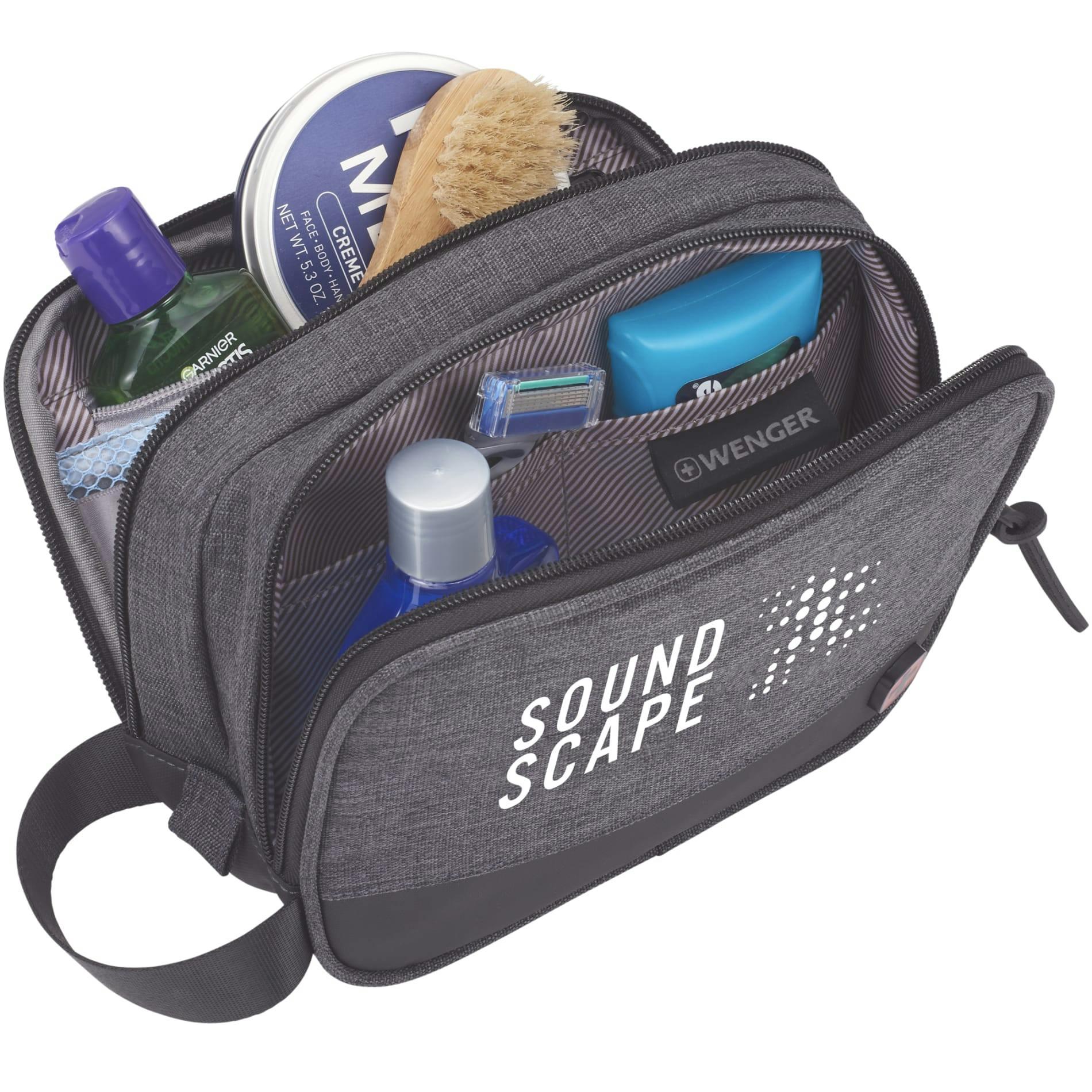 The Wenger RPET Dual Compartment Dopp Kit is a smart, sustainable solution for organizing your travel essentials. Made from recycled materials, it offers two compartments to neatly separate toiletries, grooming tools, or other small items. Its compact yet spacious design fits perfectly in your luggage while keeping everything accessible and tidy. Built with quality and durability in mind, this dopp kit is ideal for business trips, weekend getaways, or everyday use. Customize it with your logo to create a practical and eco-friendly promotional gift that’s sure to be appreciated.