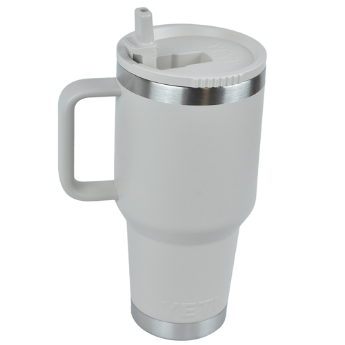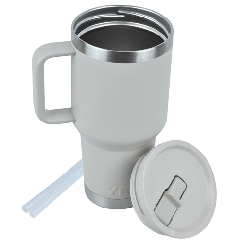 Hydrate smarter with the YETI Rambler Stainless Steel Insulated 30 oz Travel Straw Mug—built to handle busy commutes, long road trips, office days, and outdoor adventures. Crafted from rugged 18/8 stainless steel, this durable travel mug features double-wall vacuum insulation to keep drinks hot or ice-cold for hours. The 100% leakproof quick-flip straw lid prevents spills on the move, while the cupholder-compatible design makes it easy to take anywhere. A welded handle provides a secure, comfortable grip from car to campsite, and the dent- and rust-resistant construction ensures long-lasting performance. BPA-free and dishwasher safe for effortless cleaning, this insulated YETI straw mug is a premium promotional gift customers will use every single day.