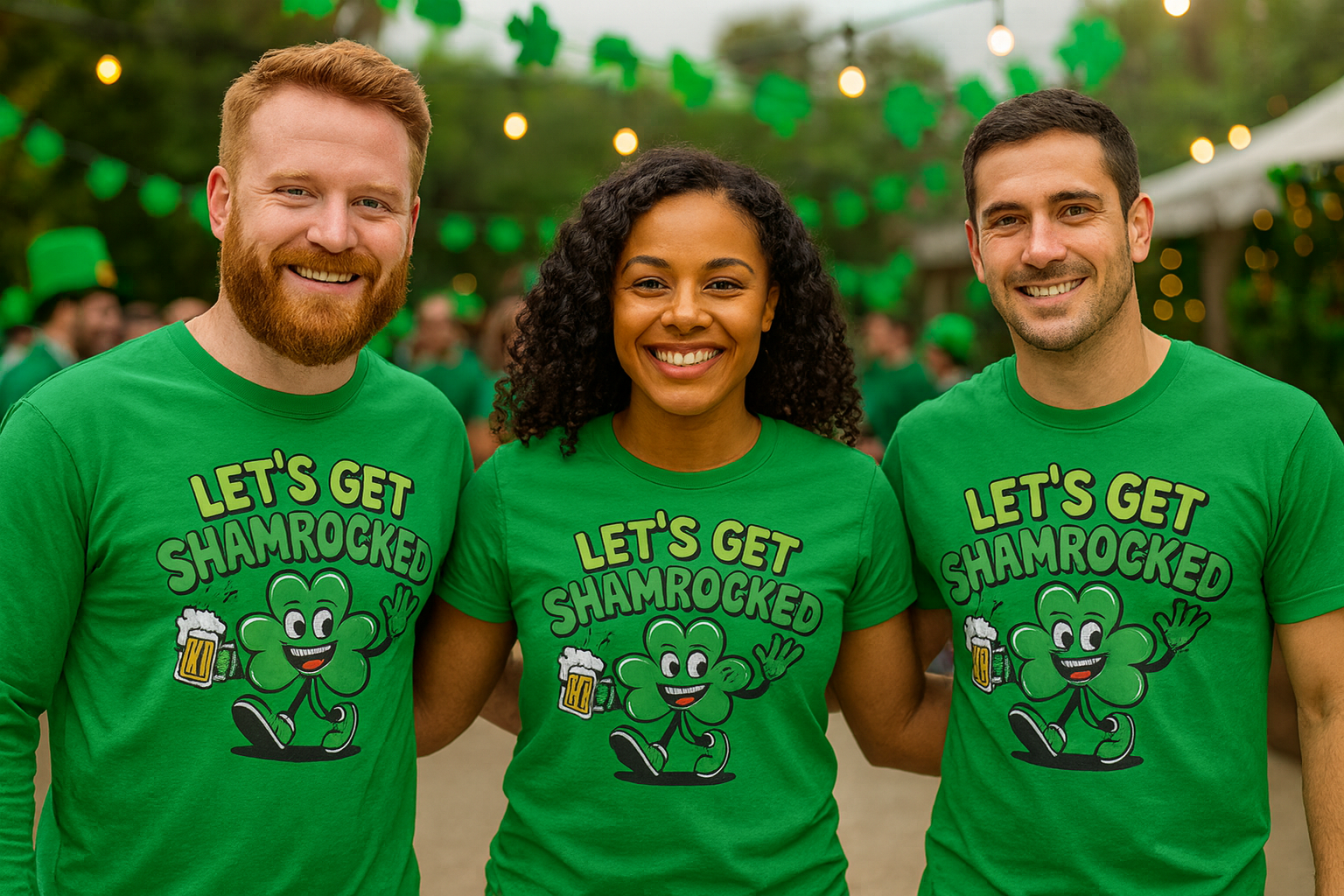Planning a bar crawl, company party, or matching family shirts? Custom St. Patrick’s Day shirts let you bring the luck and the laughs. Choose from green tees, soft blends, and youth sizes to get everyone in the spirit. Add fun slogans, clovers, or even your group's name. With no printing minimums, you can create one funny shirt or outfit a full party crew—and get it delivered in time for the festivities.