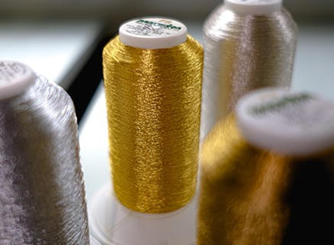 We offer gold and silver metallic threads as a way to incorporate some shine and make an embroidered design extra special. Because metallic threads have a rougher texture than regular embroidery thread, orders with metallic thread can take longer to complete. If you need an order with metallic thread for a specific date or event, just let our Product Specialists know and we will make sure your shiny new embroidery makes it to you by your deadline. If you are working with a budget, old gold or light gray threads are great, more affordable options.