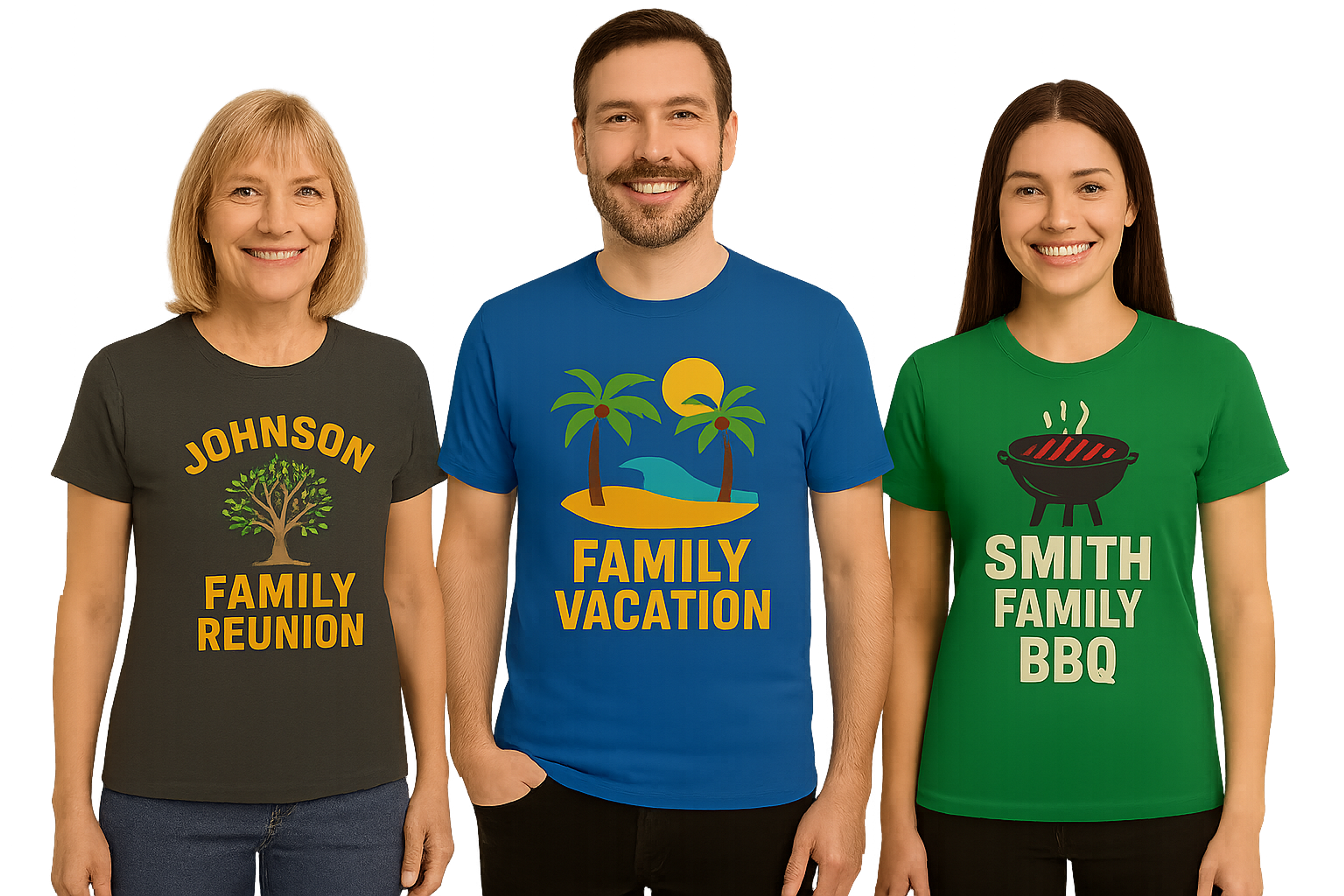 Create personalized family t-shirts for reunions, vacations, & more. No minimums & fast, free shipping.
