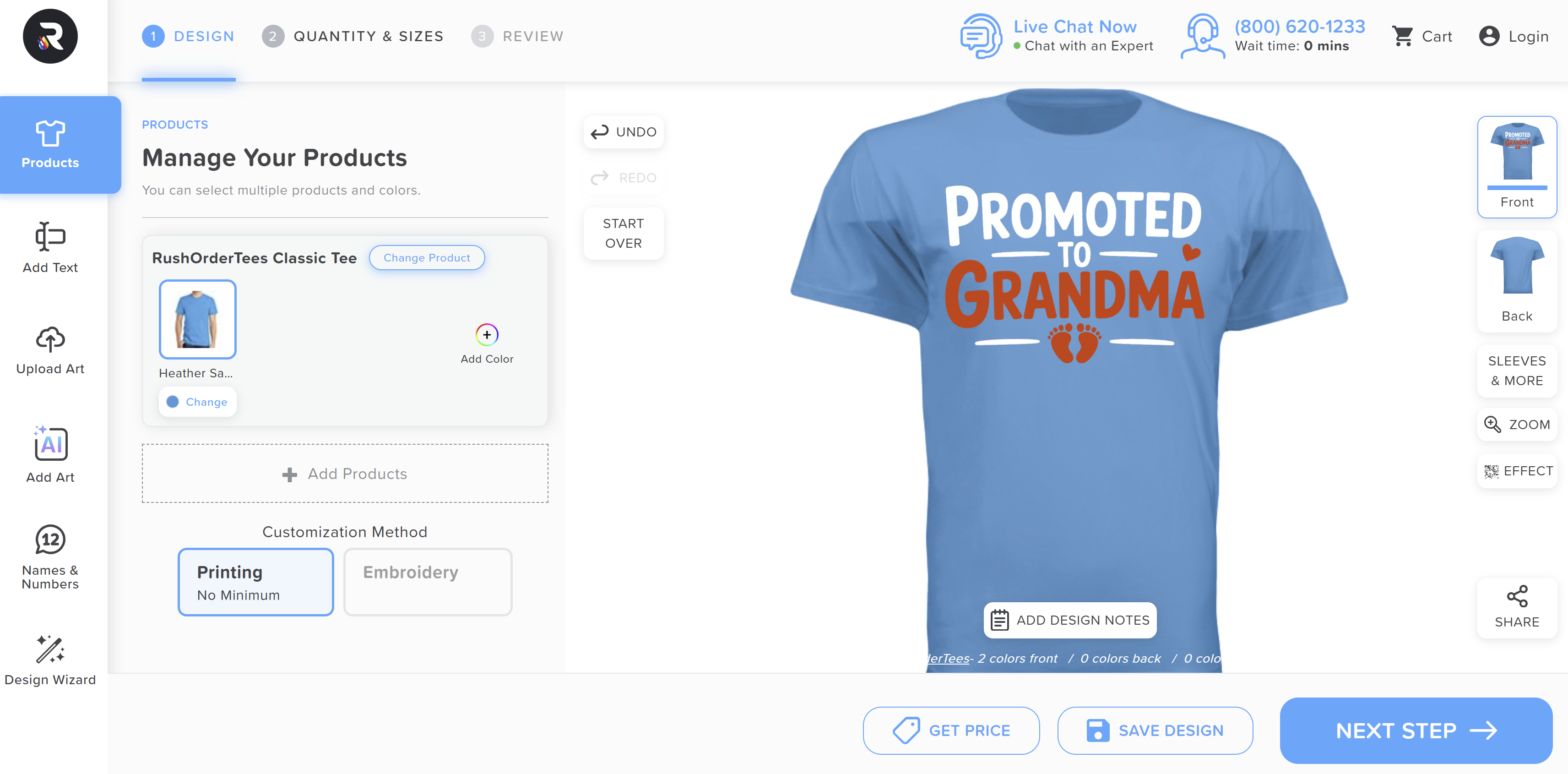 Yes, while you’ll need to have a custom design to place an order at RushOrderTees (we don’t sell blank apparel), you can use our Design Studio to create your own design directly on our site. Add clipart, type a message, change fonts or choose from our templates and personalize to suit your needs.