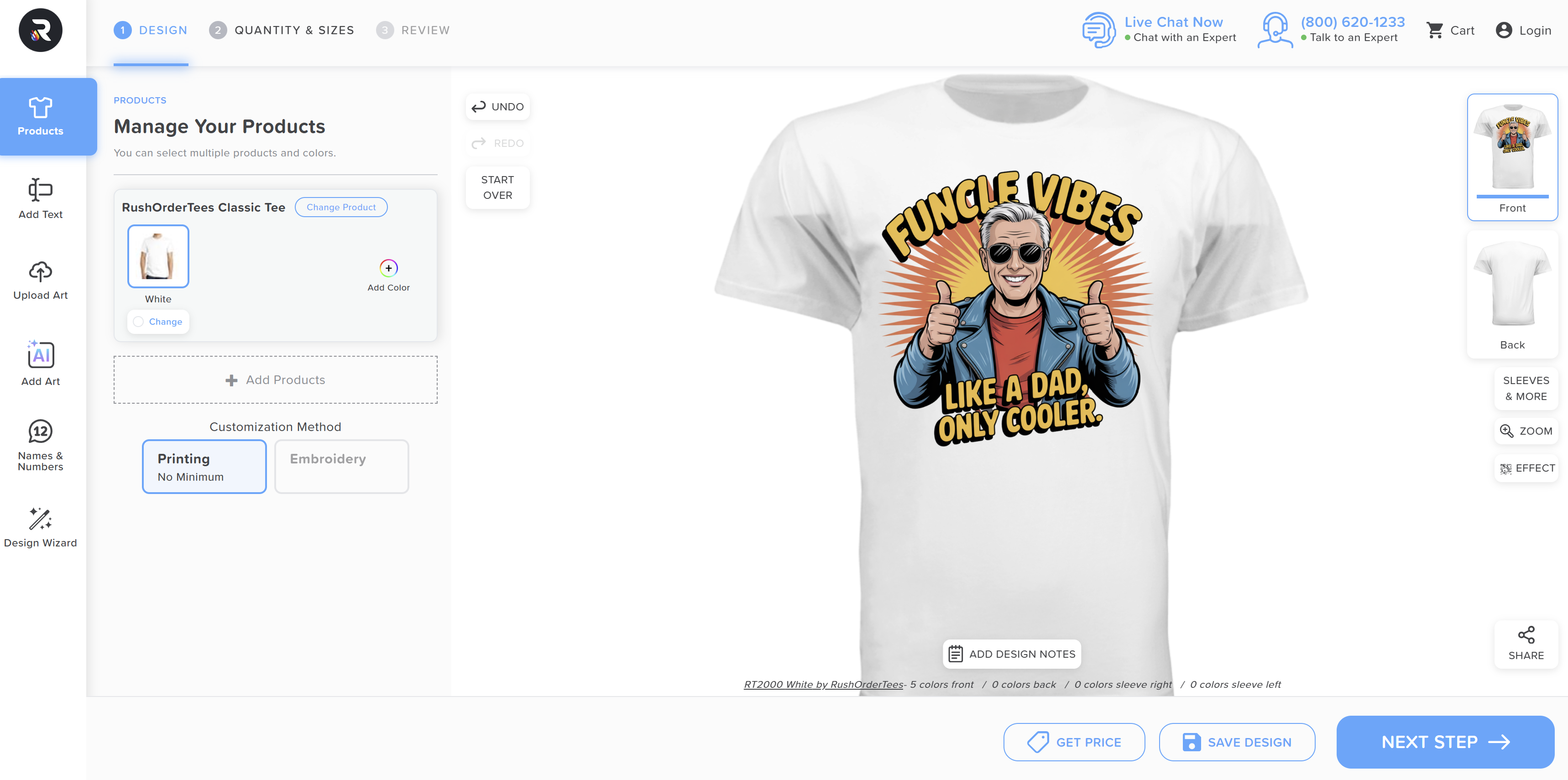 For our printed products, we’re proud to offer no minimums. For our embroidered products, there is a minimum order quantity of 6.