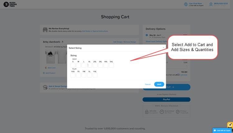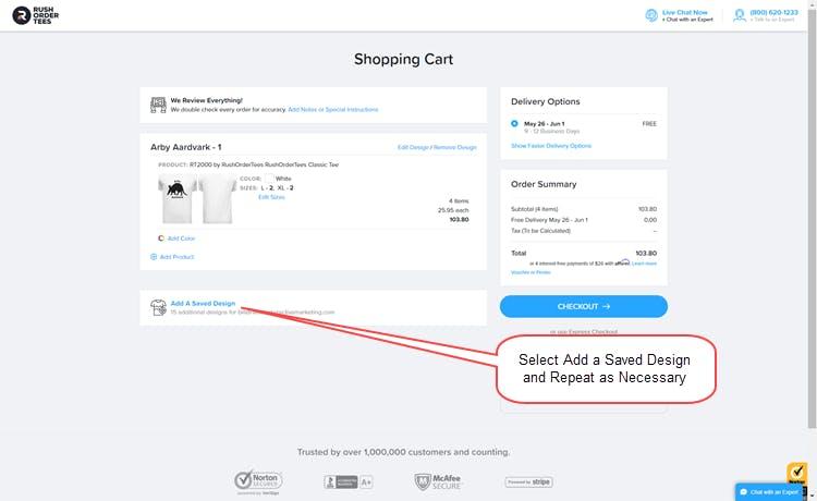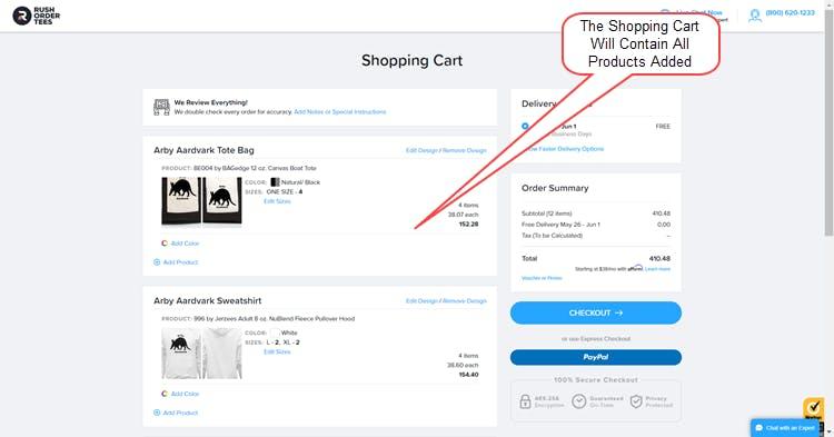 Once multiple product designs have been completed, they can be easily placed in the shopping cart to submit a single order.