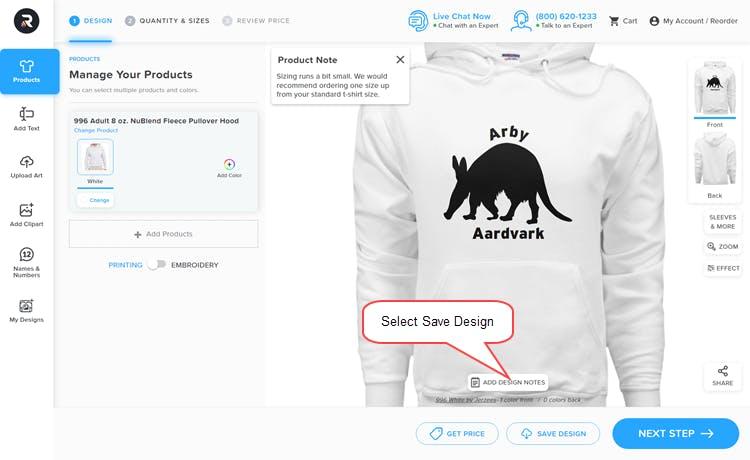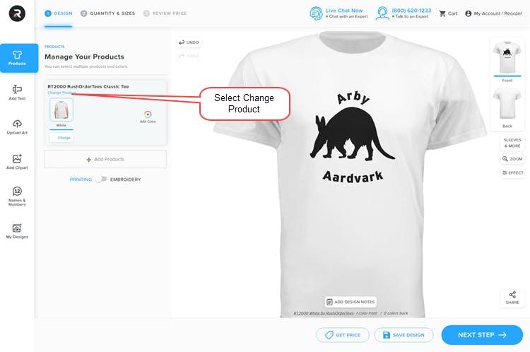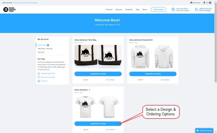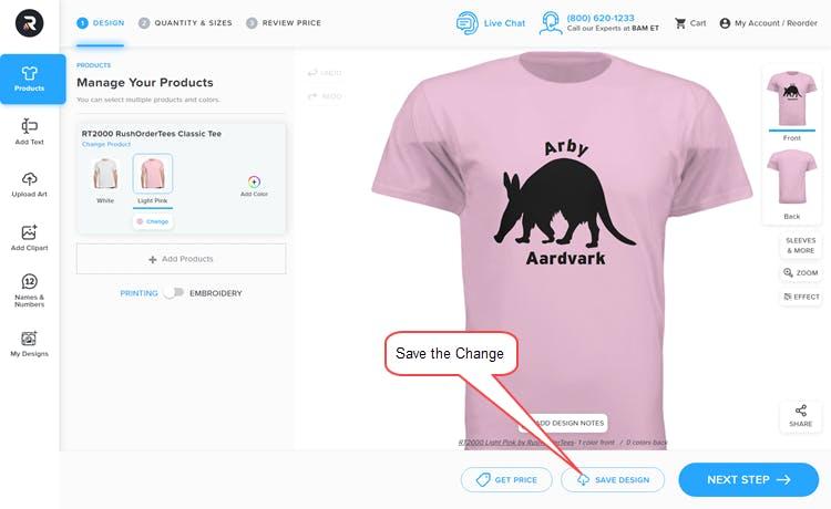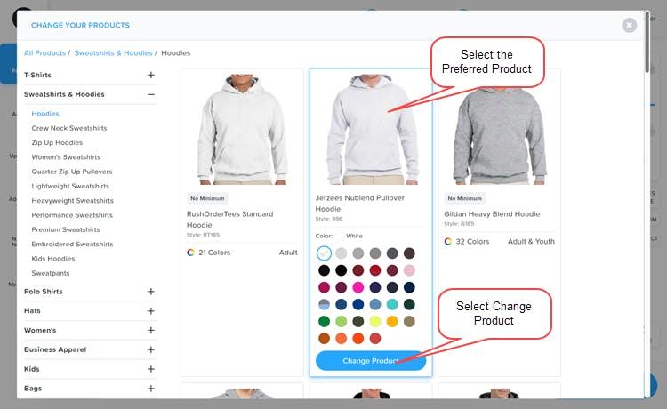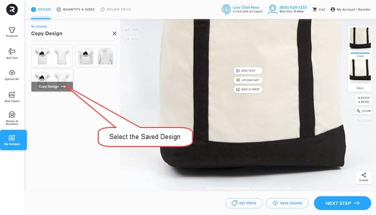 If a new product is selected and an existing design has already been saved, that design can be easily applied to the new product.