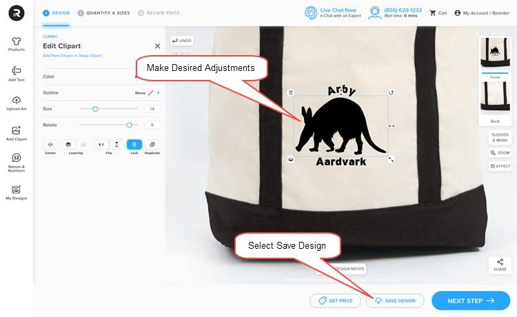 Once the saved design has been applied to the product, make the necessary adjustment.