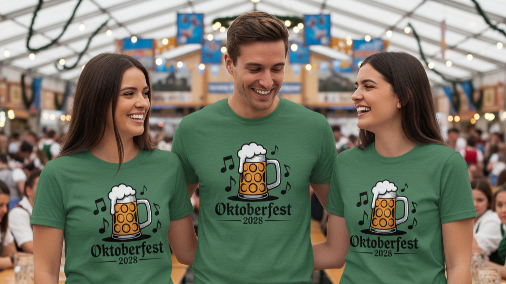 These shirts are ideal for festival photos, group outings, brewpub events, party teams, and travel groups heading to Munich or local celebrations. With fast turnaround, free shipping, and no minimums, it is simple to create shirts for any size group.