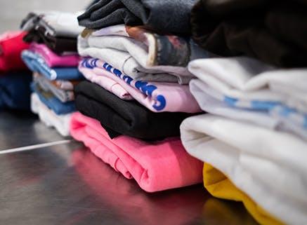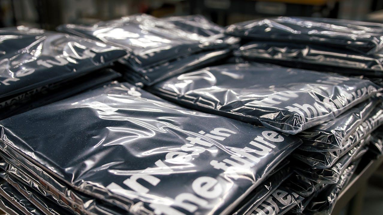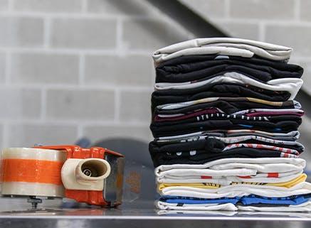 After printing the garments, our Quality Assurance team inspects each garment for quality control. They carefully fold each garment and place them in polybags. The pieces are then neatly placed inside a box and shipped out to the customer. We receive lots of compliments from our customers who say they love how their products are packaged, as well as the artwork on our boxes! If you're interested in adding polybagging to your order, contact our Product Specialists.