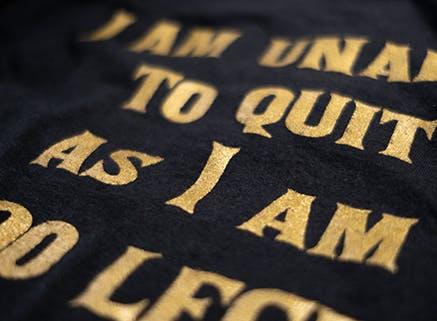 The metallic inks we offer are liquid gold and liquid silver. Using metallic ink can add a bit of extra glitz to an extra special design. If you still want a touch of gold or silver, but are looking for a more affordable option, old gold, light gray or steel gray are great options. To get quotes on using metallic ink in your design, contact our Product Specialists.