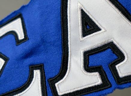 Tackle twill is an embroidery method that attaches a patch onto a garment with a satin embroidery stitch. Letters and numbers are some of the most the most common things used, and you most often see tackle twill on sports jerseys, letterman jackets and other sports merch. If you're interested in using tackle twill as a decoration method for your order, just contact our Product Specialists.