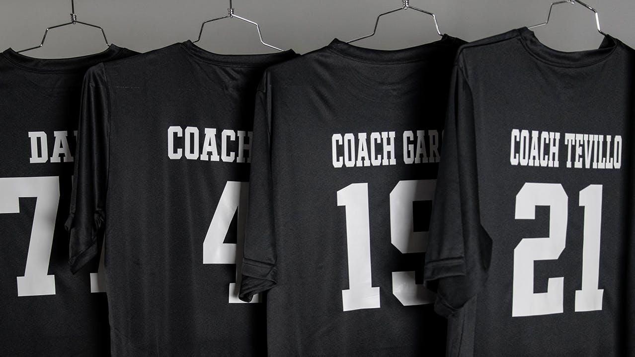 Your custom names and numbers will last for a very long time, usually lasting as long as the shirt itself! Because the vinyl material is flexible, it’ll move and stretch with you while resisting cracking or peeling.