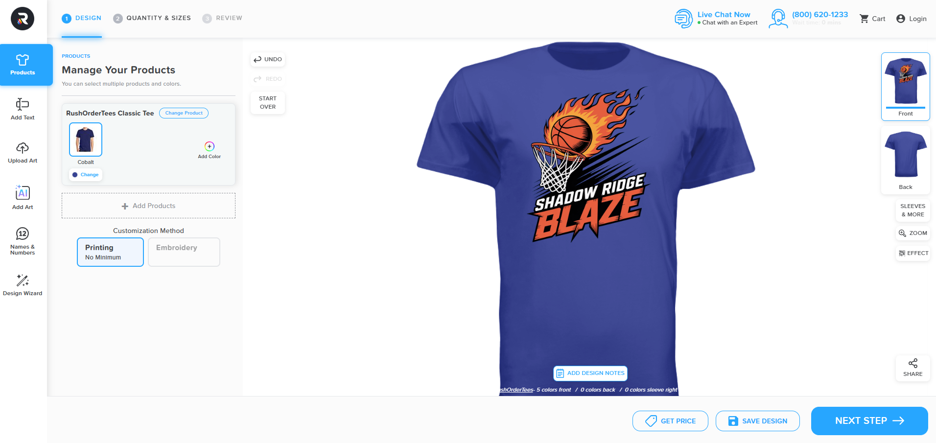 Very easy to design! Shipped fast. Affordable. We get many comments on how nice our shirts look! I will order from them again! Great quality!